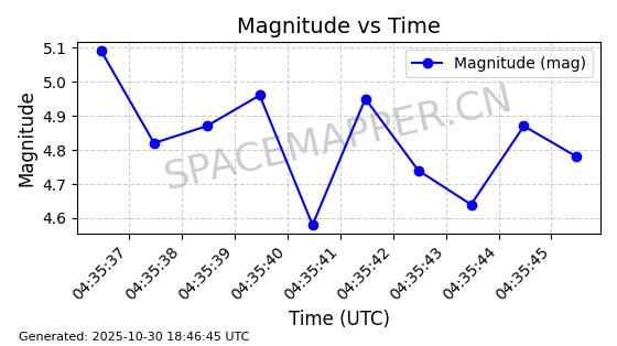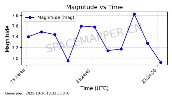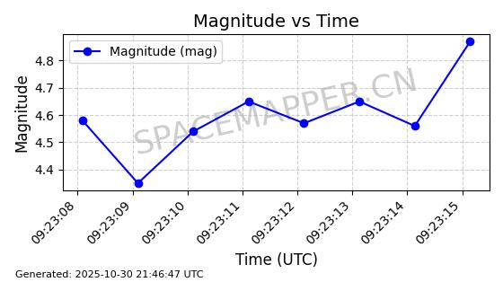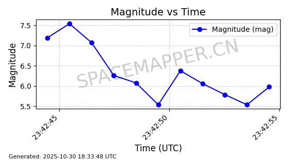 | STARLINK-30209 | 57307 | 57307 | 2023-07-10 同日期轨道 2023-096T 同批次轨道 | 在轨 | 94分钟 | 42.9876 | 456.674 | 494.944 | 0.0027918 | 2025-10-28 00:19:17 | ||