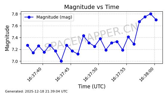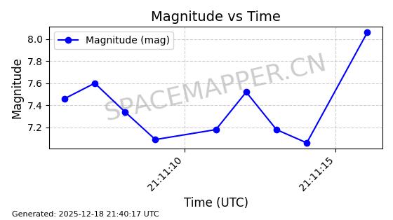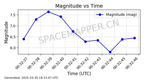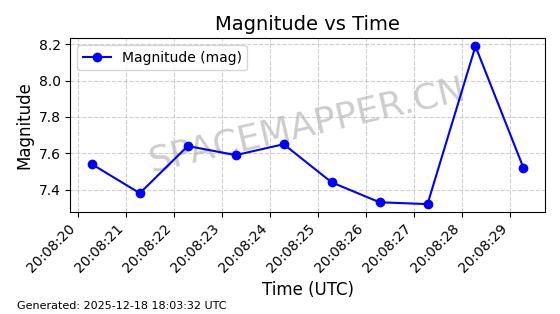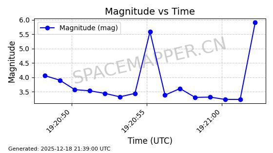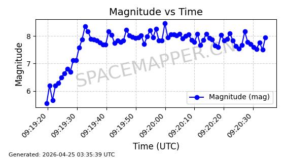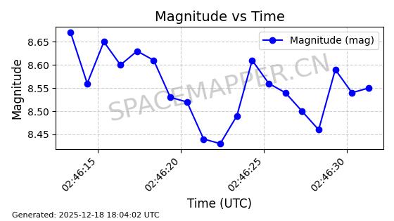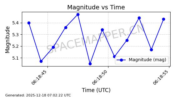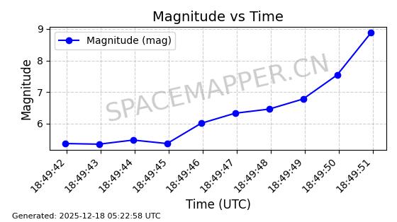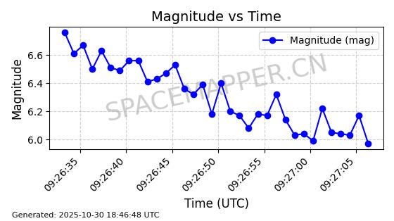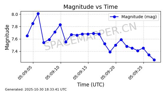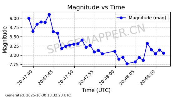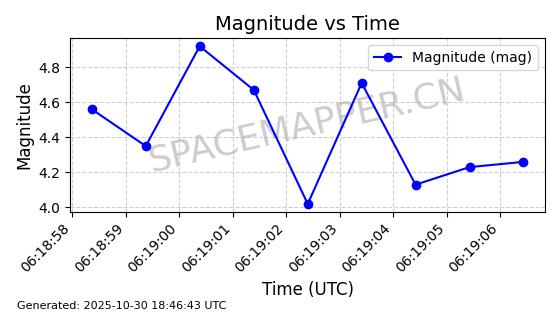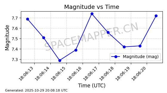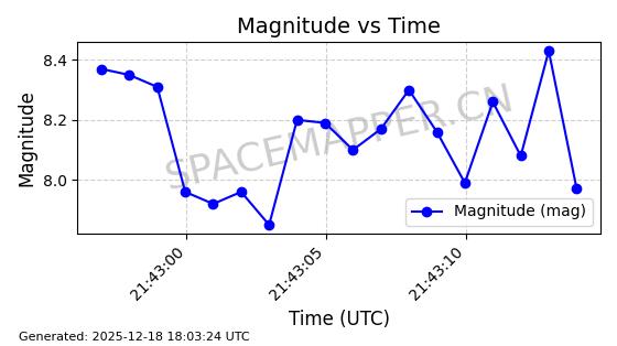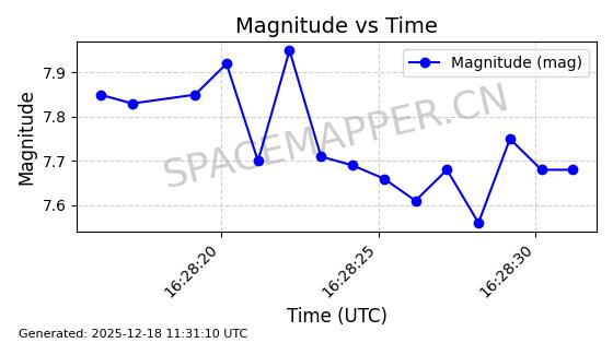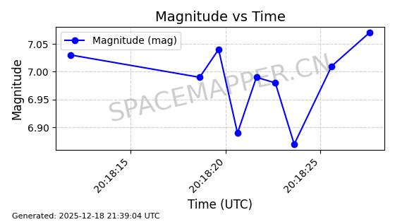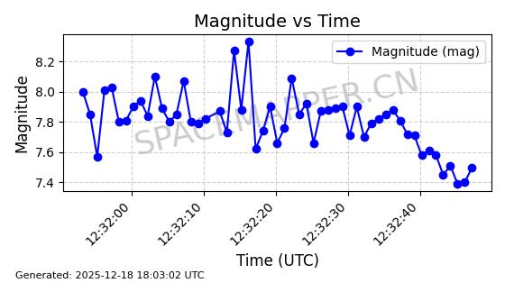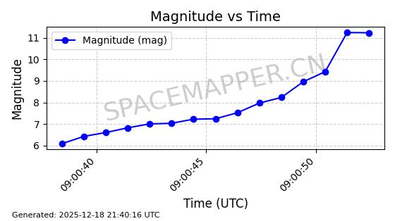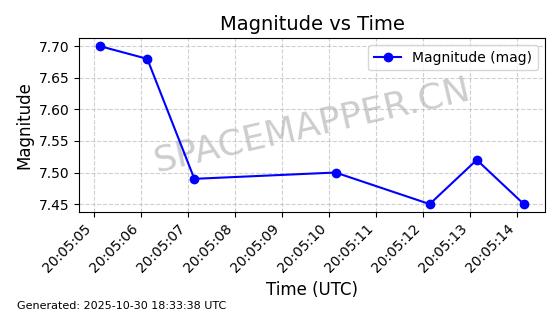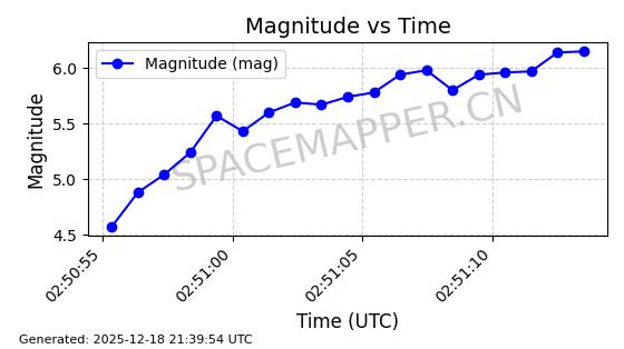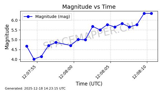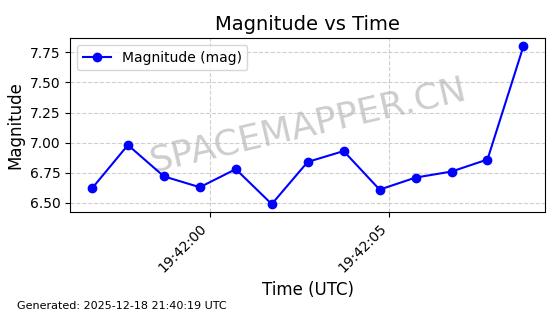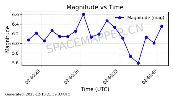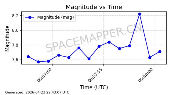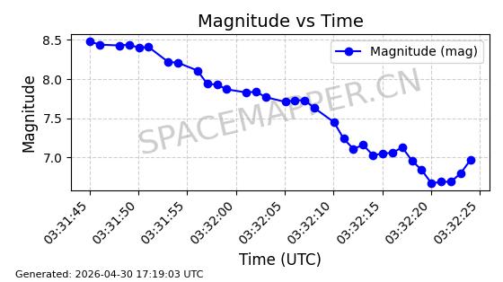 | STARLINK-30211 | 57304 | 57304 | 2023-07-10 同日期轨道 2023-096Q 同批次轨道 | 已陨落 | 88分钟 | 42.9779 | 179.698 | 217.02 | 0.0028374 | 2025-06-28 20:45:36 | ||