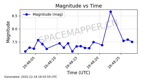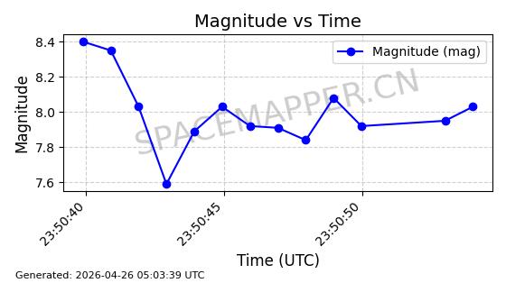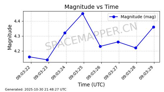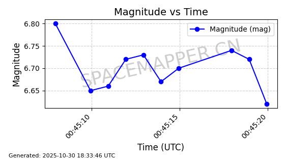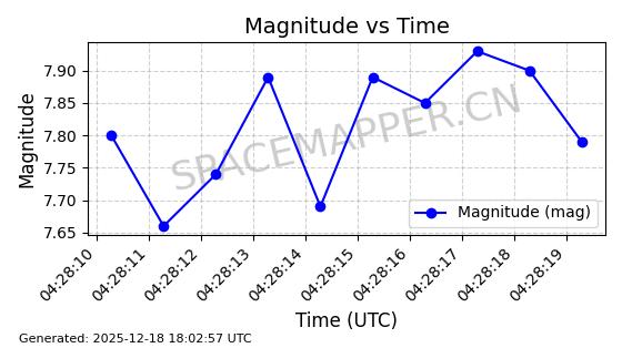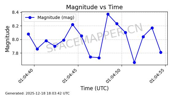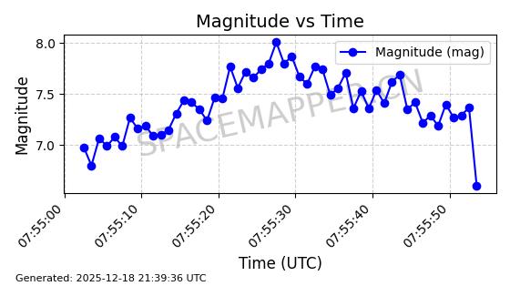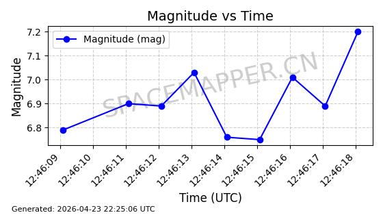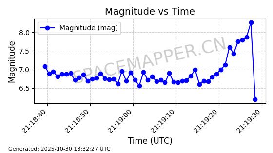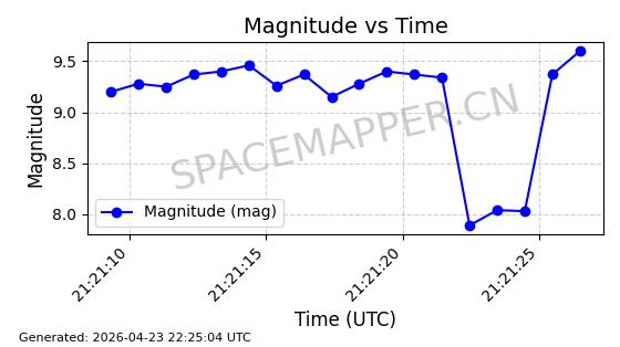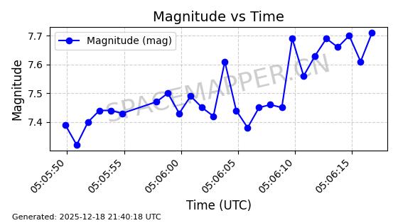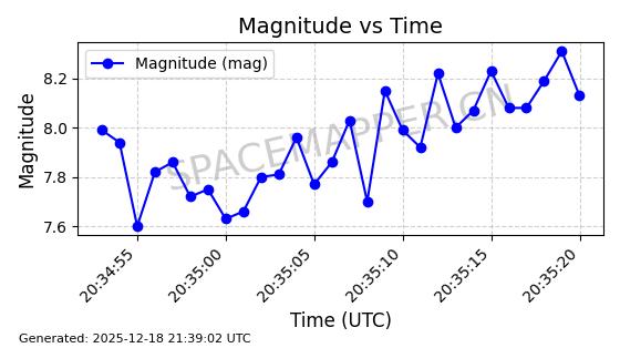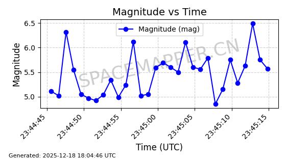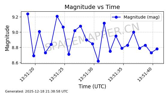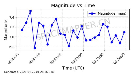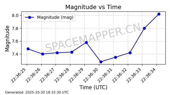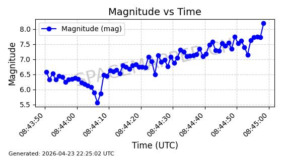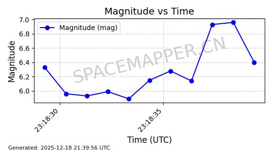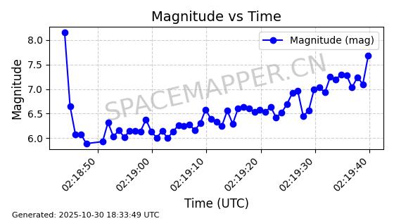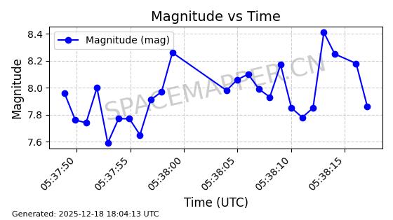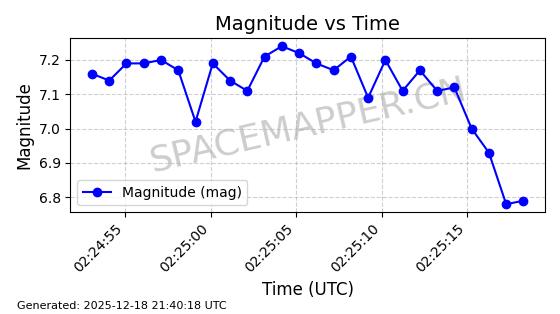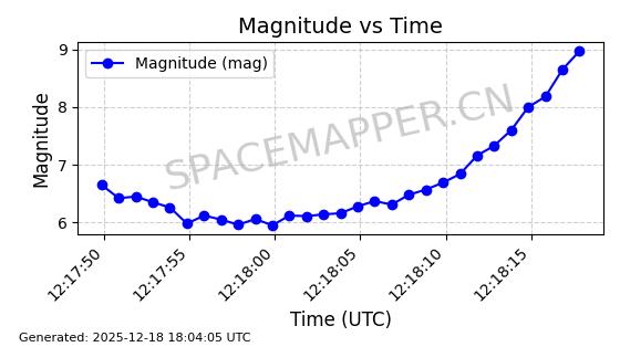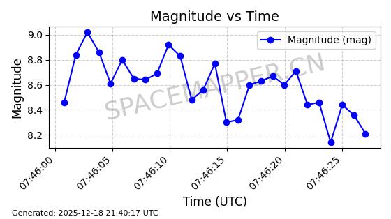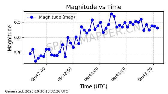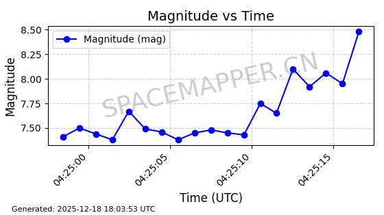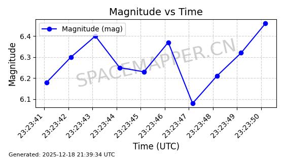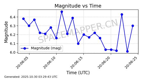 | STARLINK-30211 | 57304 | 57304 | 2023-07-10 同日期轨道 2023-096Q 同批次轨道 | 已陨落 | 88分钟 | 42.9779 | 179.698 | 217.02 | 0.0028374 | 2025-06-28 20:45:36 | ||