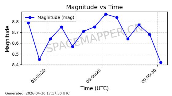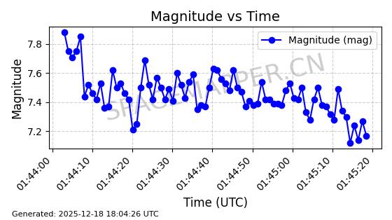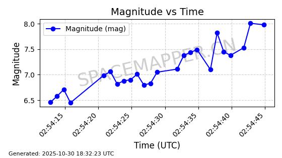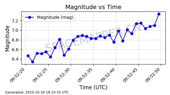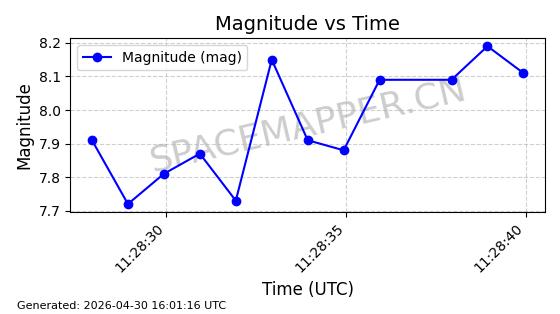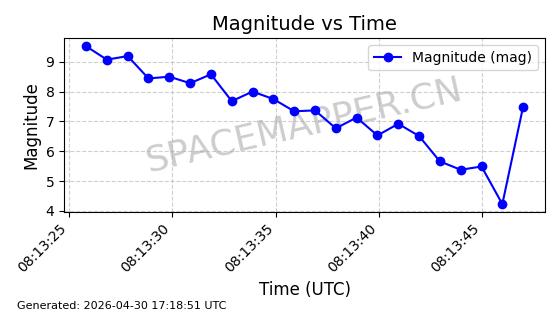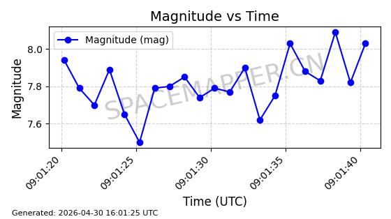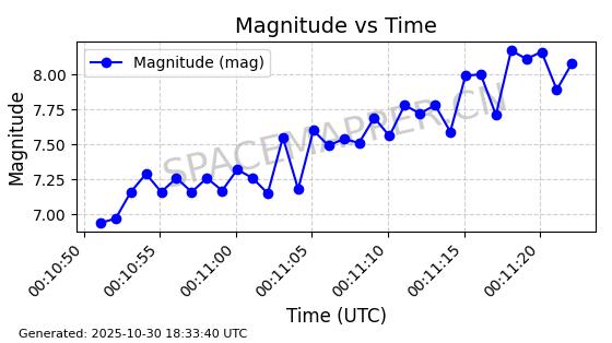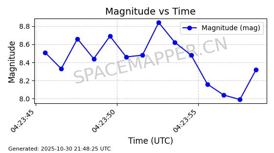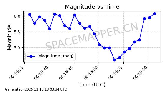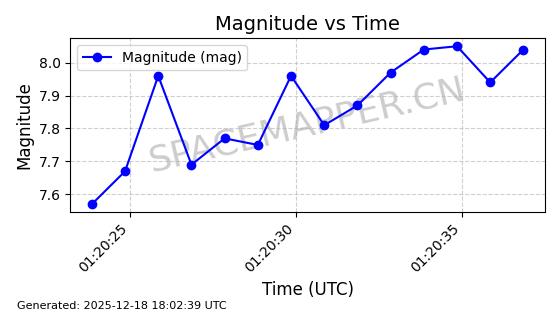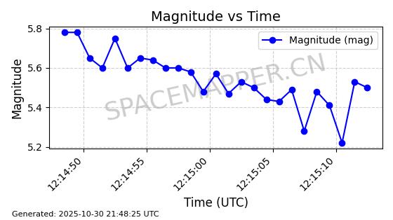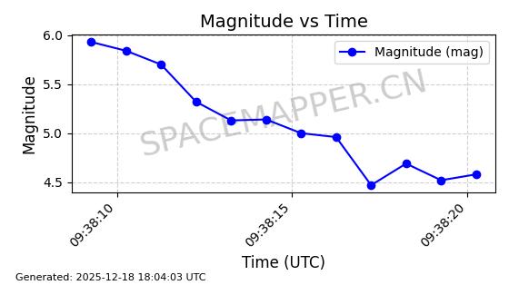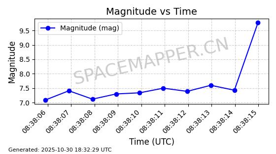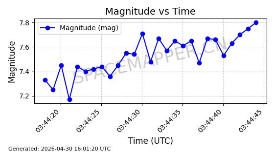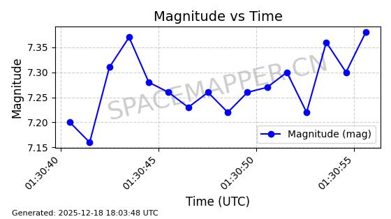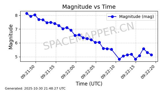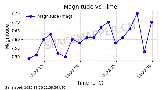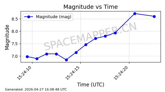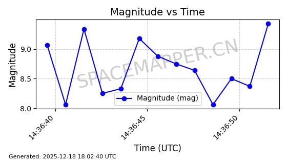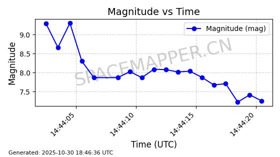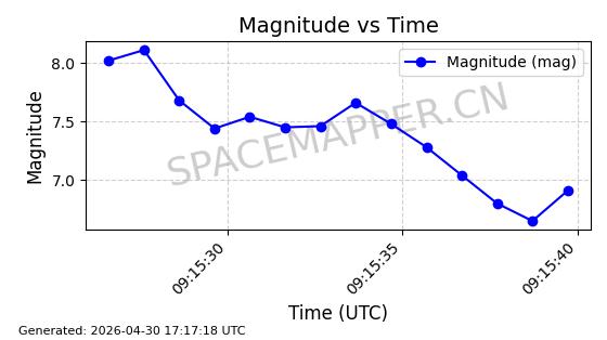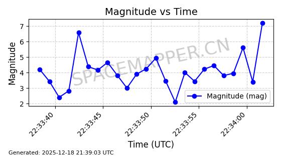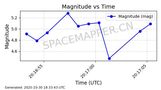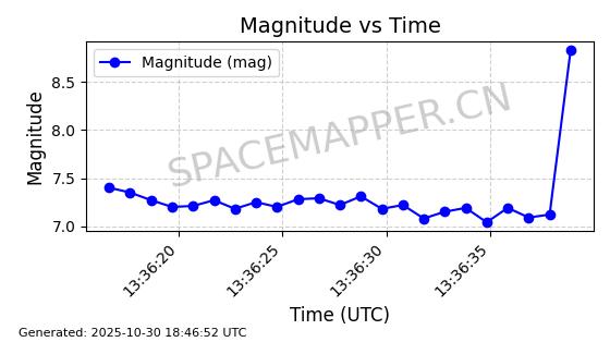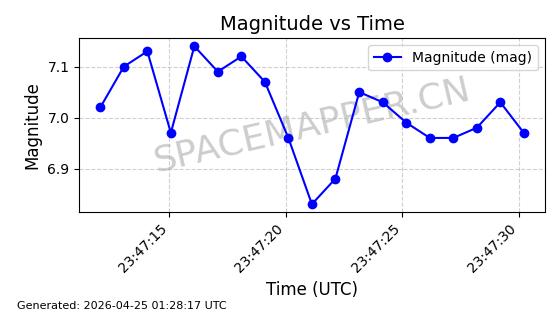 | STARLINK-30211 | 57304 | 57304 | 2023-07-10 同日期轨道 2023-096Q 同批次轨道 | 已陨落 | 88分钟 | 42.9779 | 179.698 | 217.02 | 0.0028374 | 2025-06-28 20:45:36 | ||