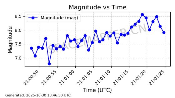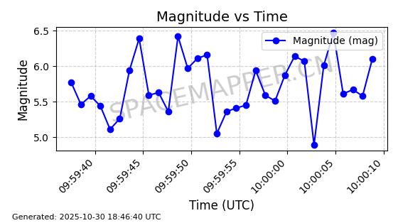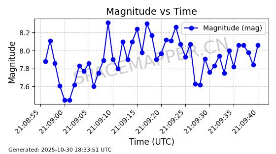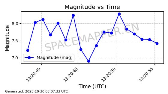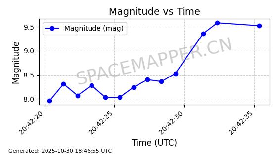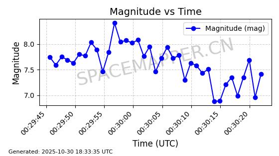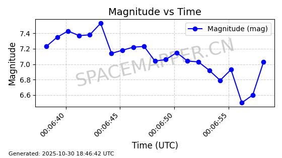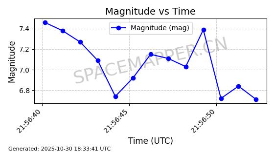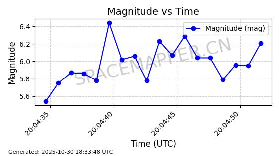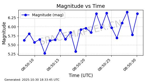 | STARLINK-30221 | 57418 | 57418 | 2023-07-20 同日期轨道 2023-102Q 同批次轨道 | 在轨 | 96分钟 | 43.0036 | 558.317 | 559.667 | 0.0000972 | 2025-10-28 03:45:48 | ||