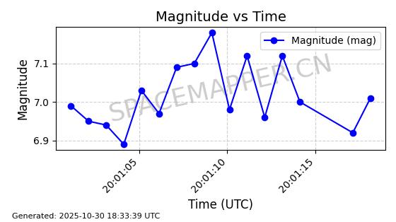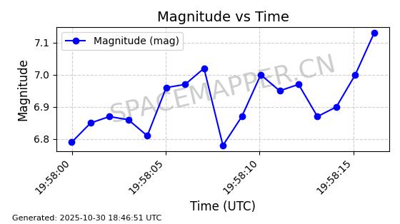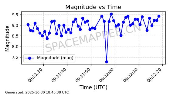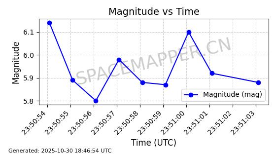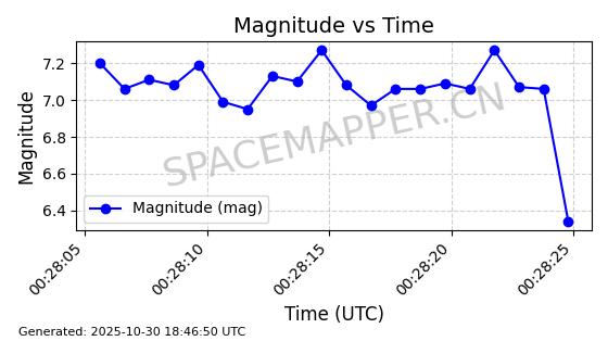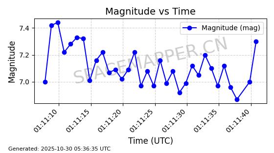 | STARLINK-30190 | 57471 | 57471 | 2023-07-28 同日期轨道 2023-107Q 同批次轨道 | 在轨 | 92分钟 | 42.9787 | 349.095 | 393.291 | 0.0032740 | 2025-10-28 10:37:03 | ||