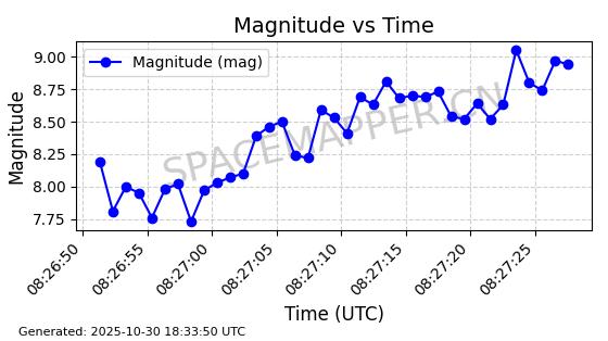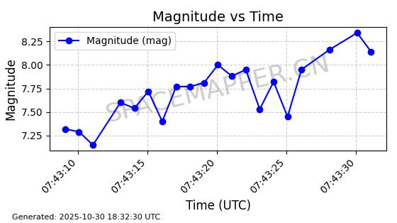 | STARLINK-30208 | 57415 | 57415 | 2023-07-20 同日期轨道 2023-102M 同批次轨道 | 在轨 | 96分钟 | 43.0025 | 558.549 | 559.627 | 0.0000776 | 2025-10-28 03:55:24 | ||
