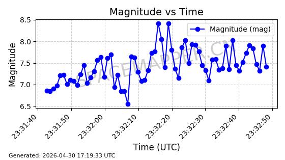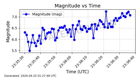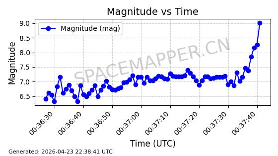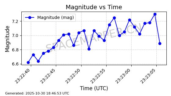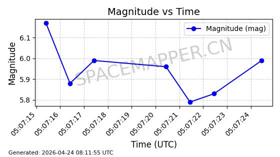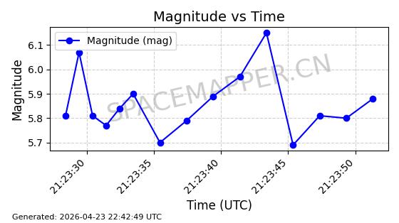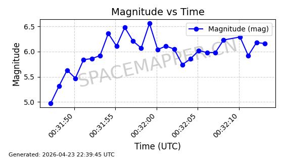 | STARLINK-30180 | 57435 | 57435 | 2023-07-24 同日期轨道 2023-105F 同批次轨道 | 已陨落 | 89分钟 | 42.9727 | 212.218 | 226.272 | 0.0010651 | 2025-06-15 15:31:22 | ||
