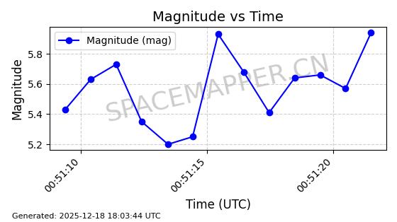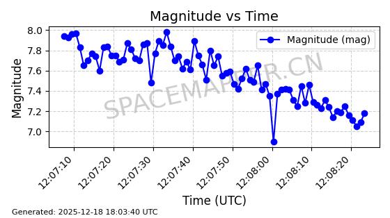 | STARLINK-30267 | 57663 | 57663 | 2023-08-22 同日期轨道 2023-124A 同批次轨道 | 在轨 | 94分钟 | 53.1603 | 474.472 | 476 | 0.0001114 | 2025-12-17 01:26:35 | ||