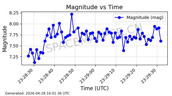 | STARLINK-30171 | 57469 | 57469 | 2023-07-28 同日期轨道 2023-107N 同批次轨道 | 在轨 | 94分钟 | 43.0051 | 482.209 | 484.113 | 0.0001387 | 2026-04-29 06:00:03 | ||