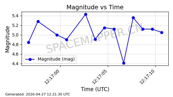 | STARLINK-30185 | 57459 | 57459 | 2023-07-28 同日期轨道 2023-107C 同批次轨道 | 已陨落 | 89分钟 | 42.9901 | 206.482 | 212.58 | 0.0004627 | 2026-02-12 07:58:10 | ||