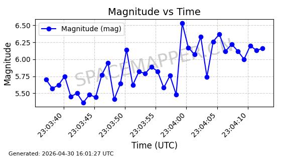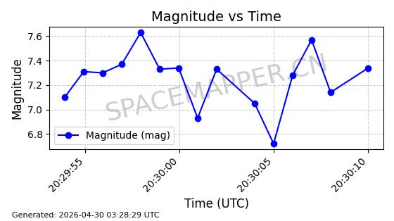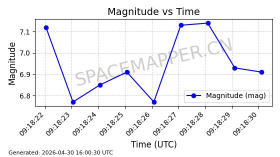 | STARLINK-30193 | 57414 | 57414 | 2023-07-20 同日期轨道 2023-102L 同批次轨道 | 在轨 | 94分钟 | 42.9998 | 473.992 | 475.124 | 0.0000825 | 2026-04-29 06:11:21 | ||