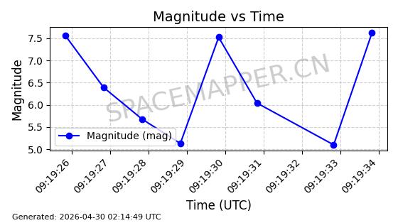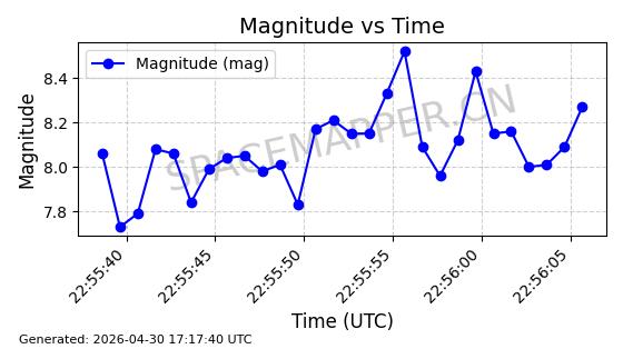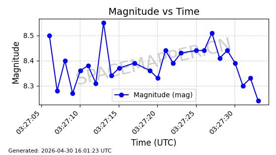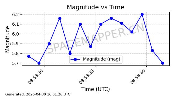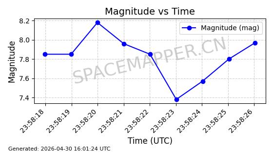 | STARLINK-30263 | 57642 | 57642 | 2023-08-17 同日期轨道 2023-122L 同批次轨道 | 在轨 | 94分钟 | 43.0056 | 482.092 | 484.082 | 0.0001449 | 2026-04-29 03:00:06 | ||