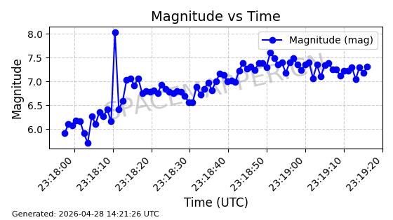 | STARLINK-30228 | 57502 | 57502 | 2023-08-07 同日期轨道 2023-113H 同批次轨道 | 已陨落 | 89分钟 | 42.9664 | 232.929 | 261.617 | 0.0021649 | 2026-01-28 15:56:46 | ||