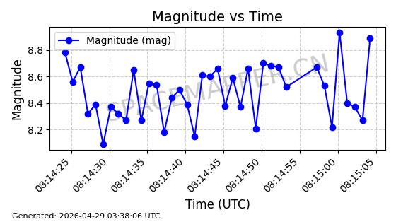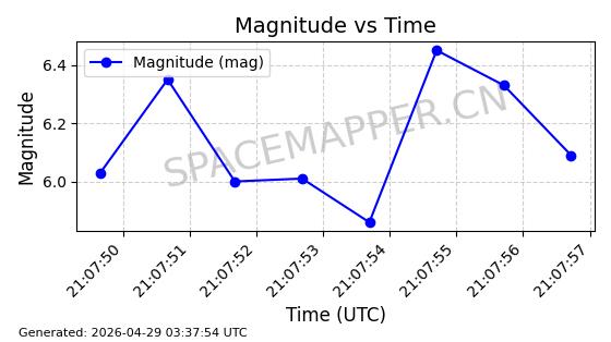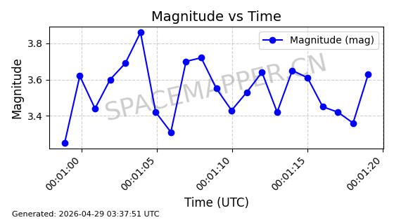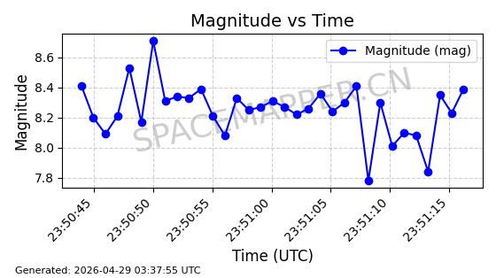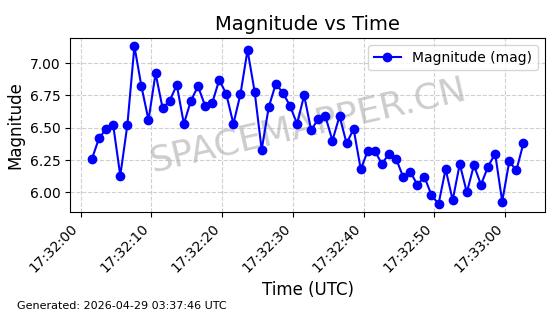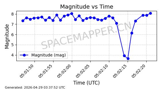 | STARLINK-30329 | 57635 | 57635 | 2023-08-17 同日期轨道 2023-122D 同批次轨道 | 在轨 | 94分钟 | 43.0023 | 482.3 | 483.818 | 0.0001105 | 2026-04-29 04:03:00 | ||