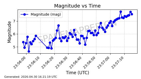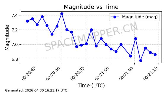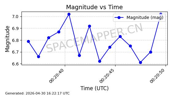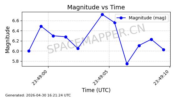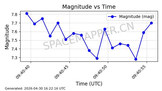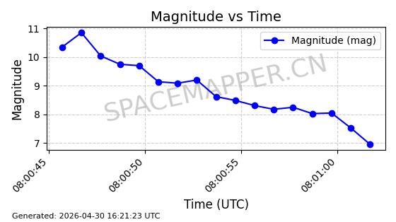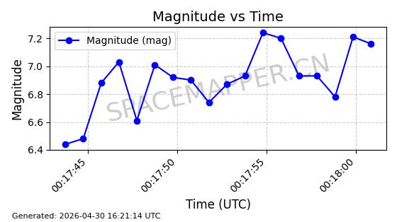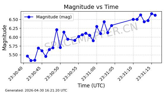 | STARLINK-30362 | 57745 | 57745 | 2023-09-01 同日期轨道 2023-131P 同批次轨道 | 在轨 | 94分钟 | 42.9994 | 482.633 | 483.529 | 0.0000652 | 2026-04-29 01:11:44 | ||