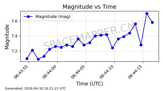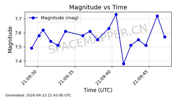 | STARLINK-30279 | 57885 | 57885 | 2023-09-16 同日期轨道 2023-144X 同批次轨道 | 在轨 | 94分钟 | 43.0060 | 482.003 | 484.029 | 0.0001476 | 2026-04-29 01:15:19 | ||