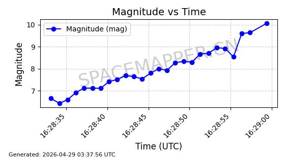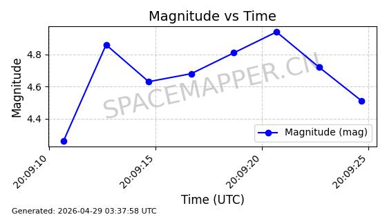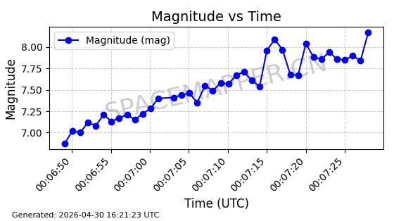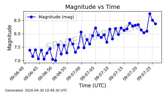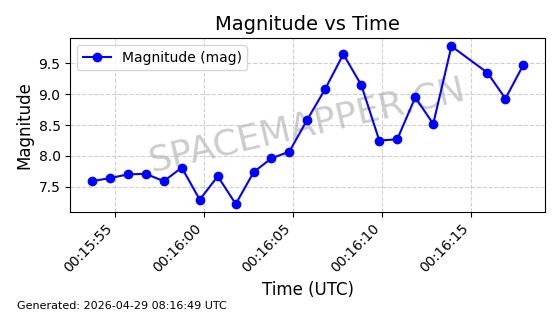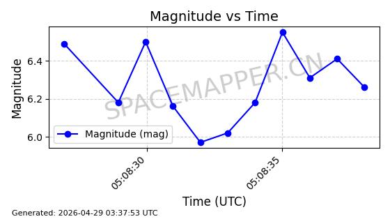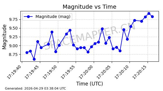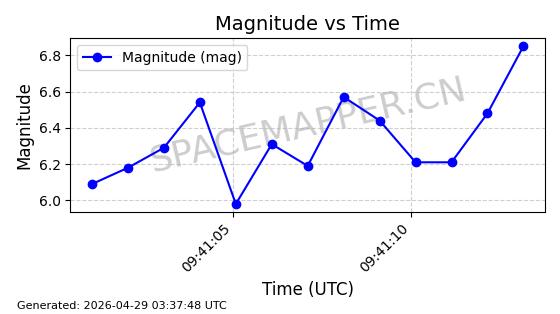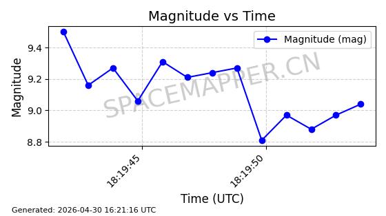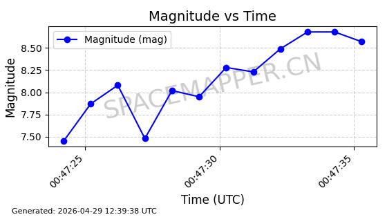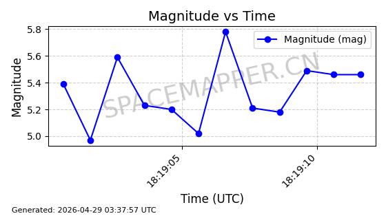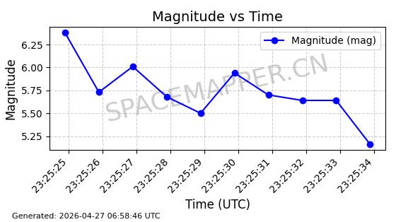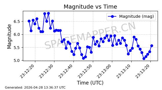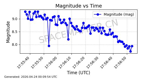 | STARLINK-30285 | 57840 | 57840 | 2023-09-12 同日期轨道 2023-141A 同批次轨道 | 在轨 | 94分钟 | 53.1609 | 474.432 | 476.176 | 0.0001271 | 2026-04-29 05:12:42 | ||