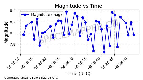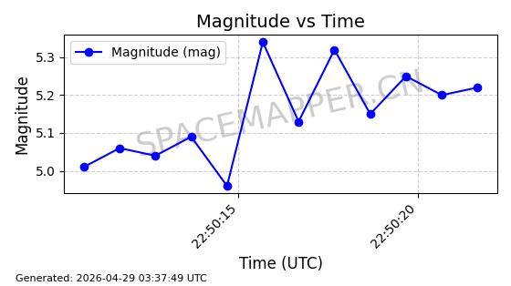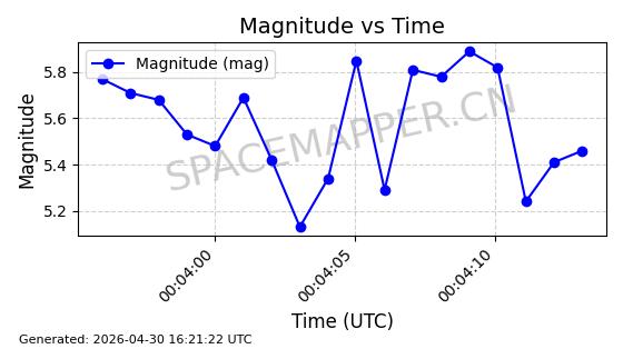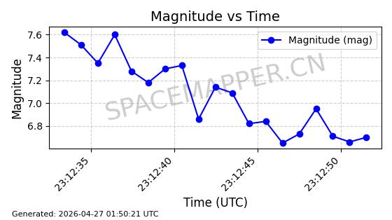 | STARLINK-30283 | 57680 | 57680 | 2023-08-22 同日期轨道 2023-124T 同批次轨道 | 在轨 | 94分钟 | 53.1614 | 474.5 | 475.996 | 0.0001090 | 2026-04-29 07:10:41 | ||