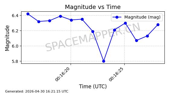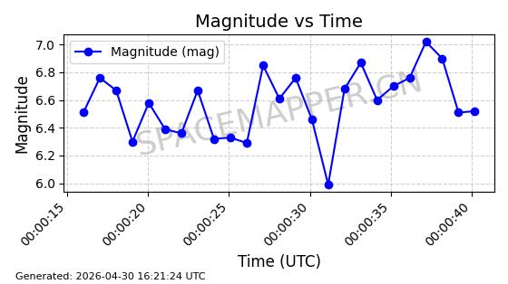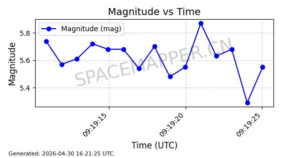| 卫星名称 | AOE ID | NORAD ID | 发射日期 国际编号 | 在轨状态 | 轨道周期 | 轨道倾角 (度) | 近地点 (Km) | 远地点 (Km) | 偏心率 | 更新时间 (UTC) | 近期光变曲线 | 服务 |