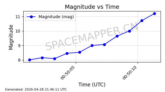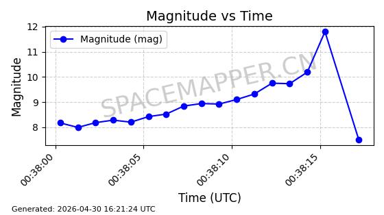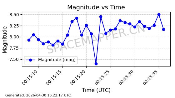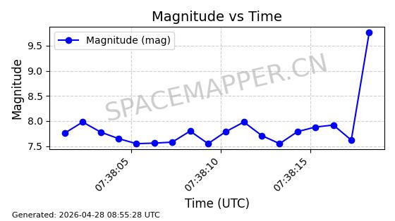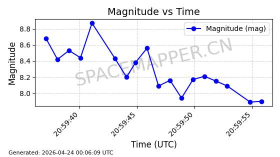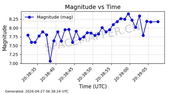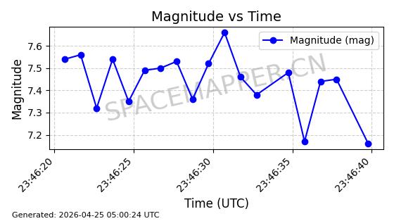 | STARLINK-30328 | 57638 | 57638 | 2023-08-17 同日期轨道 2023-122G 同批次轨道 | 在轨 | 94分钟 | 43.0017 | 482.485 | 483.649 | 0.0000847 | 2026-04-28 19:14:55 | ||