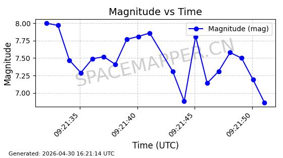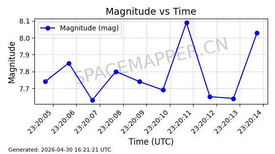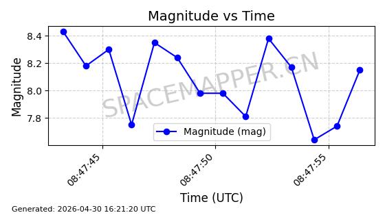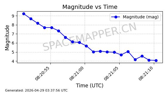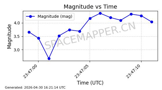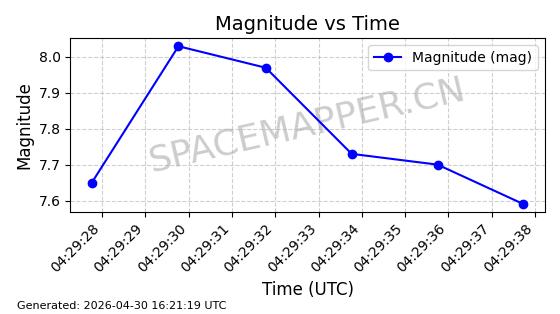 | STARLINK-30348 | 57712 | 57712 | 2023-08-27 同日期轨道 2023-129Q 同批次轨道 | 在轨 | 94分钟 | 43.0047 | 482.208 | 483.914 | 0.0001243 | 2026-04-29 05:56:31 | ||