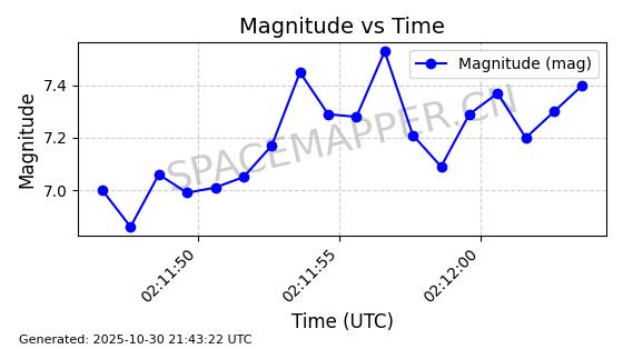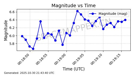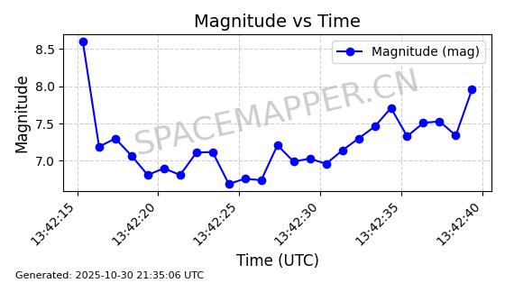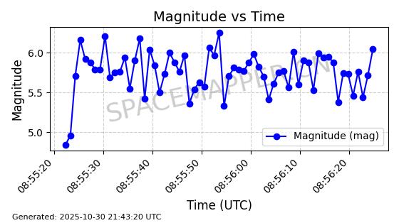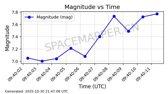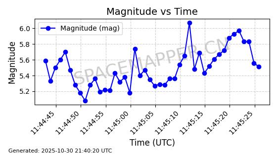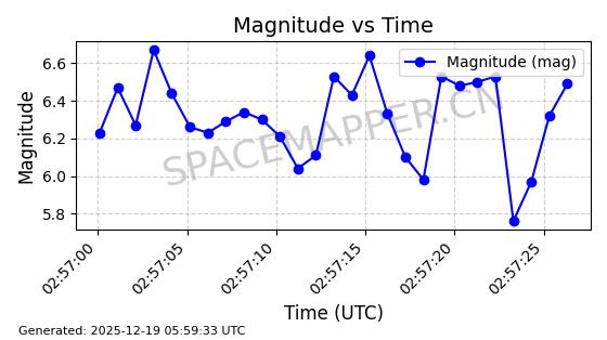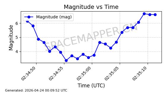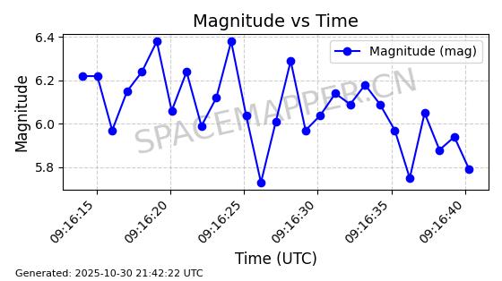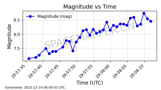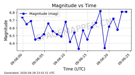 | STARLINK-30458 | 57934 | 57934 | 2023-09-24 同日期轨道 2023-147X 同批次轨道 | 已陨落 | 89分钟 | 42.9693 | 204.832 | 231.65 | 0.0020327 | 2025-10-06 14:31:01 | ||