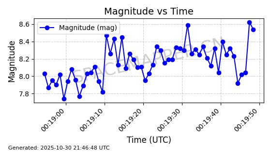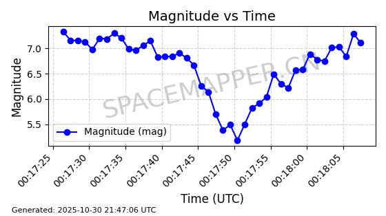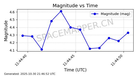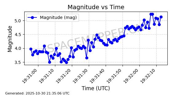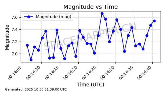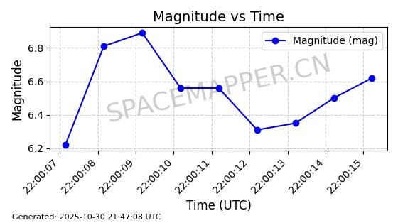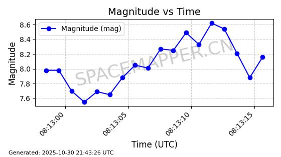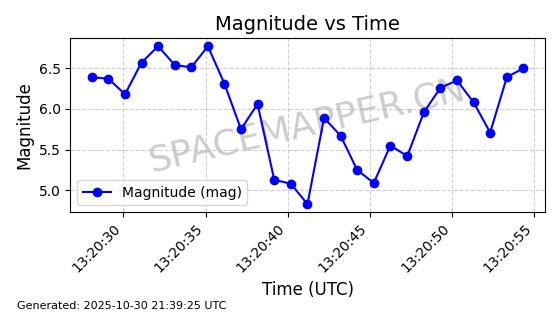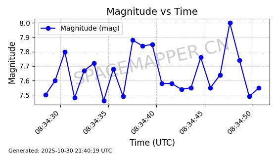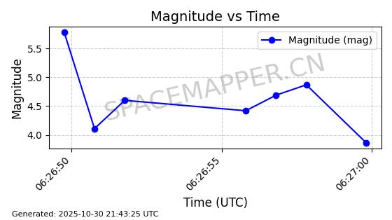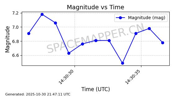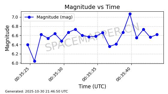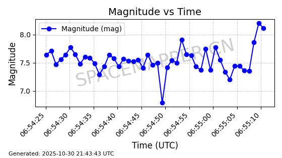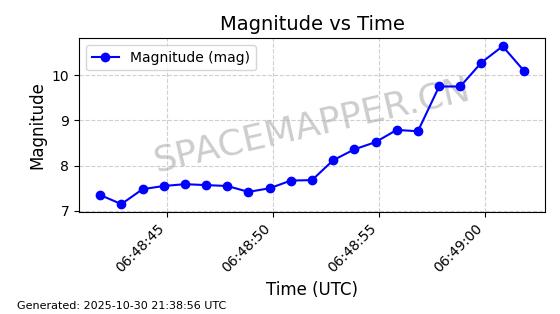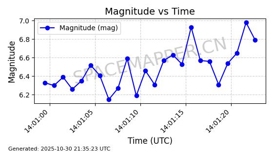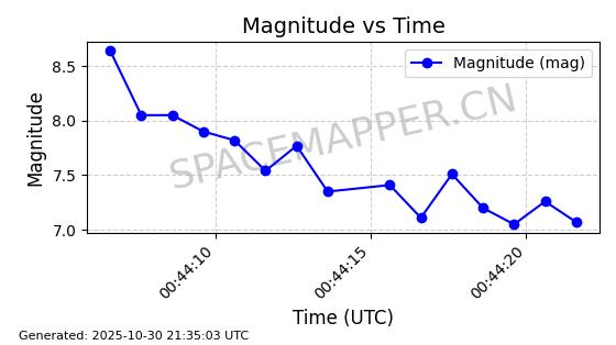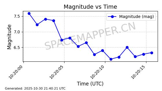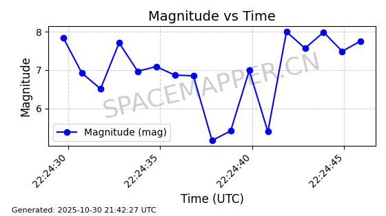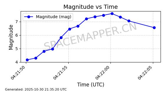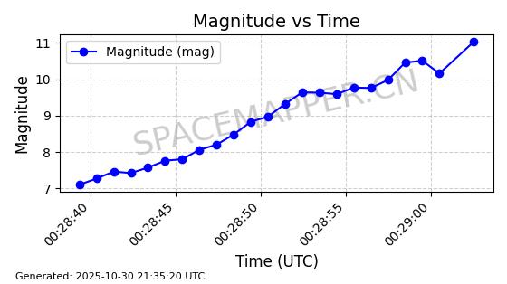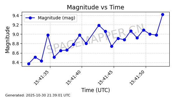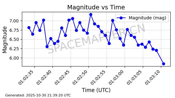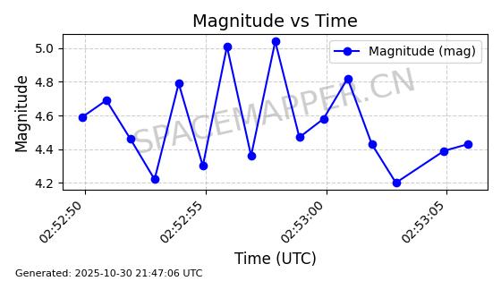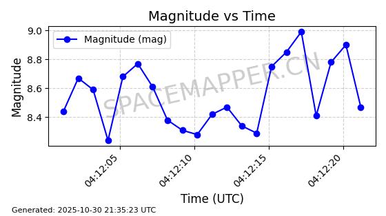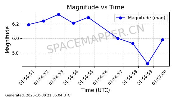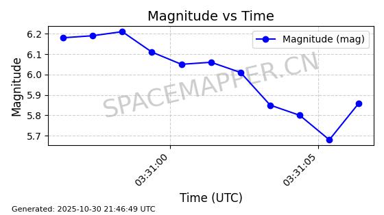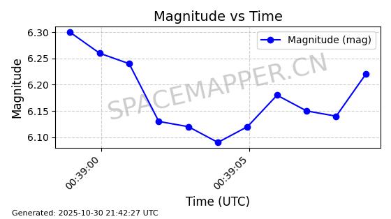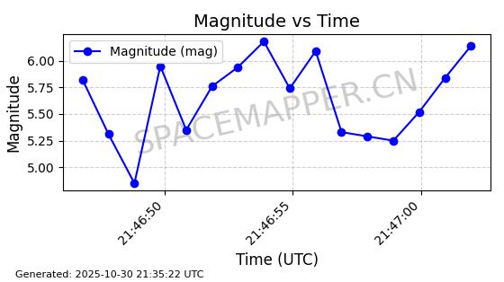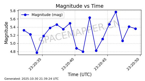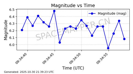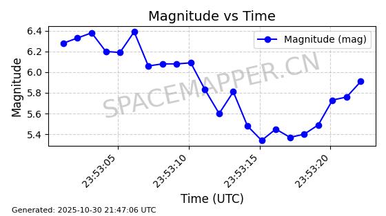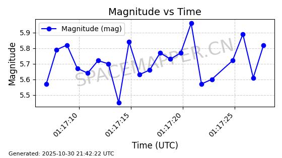 | STARLINK-30421 | 58107 | 58107 | 2023-10-21 同日期轨道 2023-161L 同批次轨道 | 在轨 | 94分钟 | 53.1592 | 474.43 | 476.07 | 0.0001196 | 2025-10-30 00:09:28 |