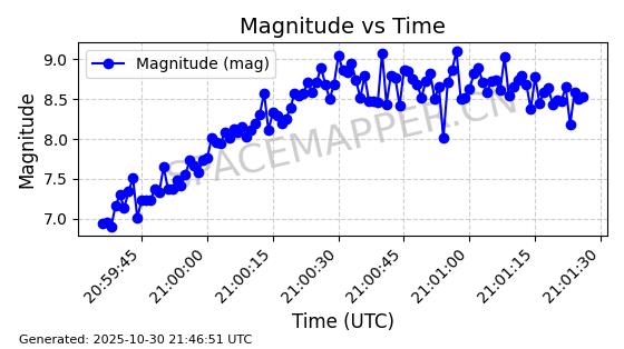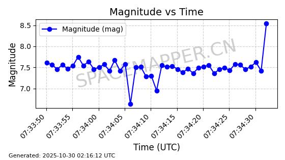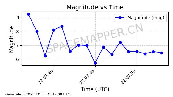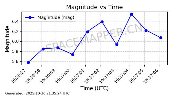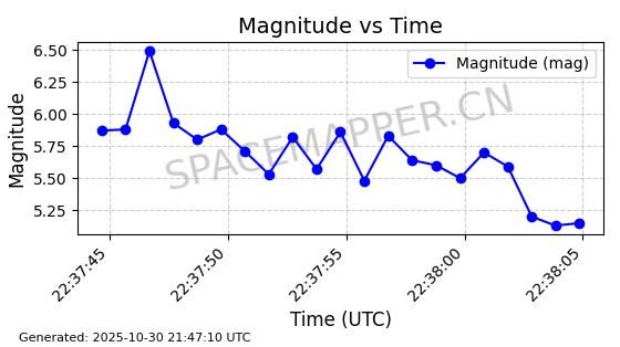 | STARLINK-30437 | 58036 | 58036 | 2023-10-09 同日期轨道 2023-156J 同批次轨道 | 在轨 | 94分钟 | 53.1607 | 474.458 | 476.058 | 0.0001167 | 2025-10-30 06:58:08 | ||