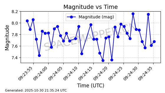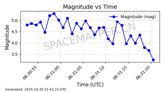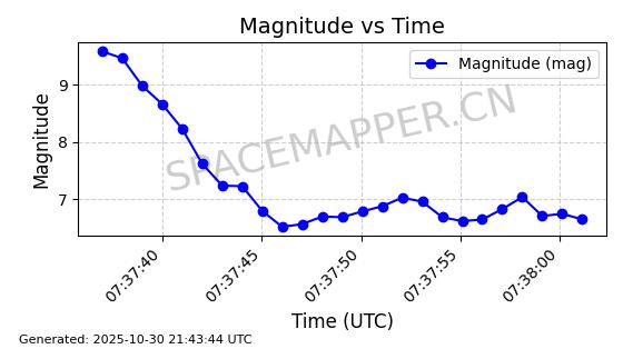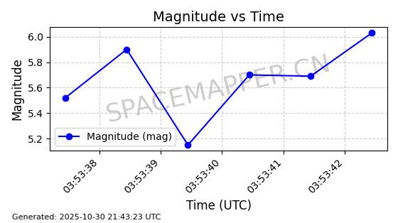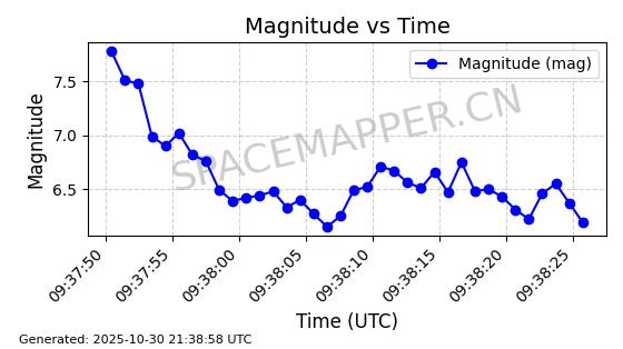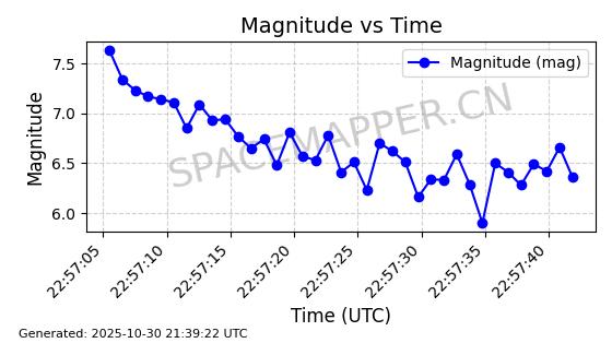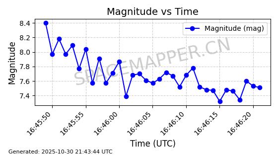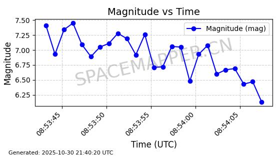 | STARLINK-30400 | 57937 | 57937 | 2023-09-25 同日期轨道 2023-148C 同批次轨道 | 在轨 | 94分钟 | 53.1588 | 474.387 | 476.087 | 0.0001239 | 2025-10-30 04:39:00 | ||