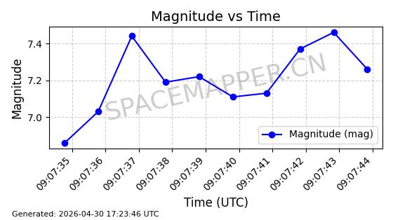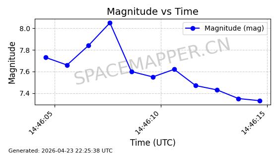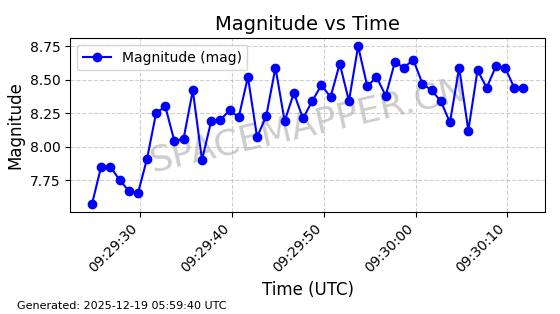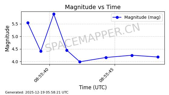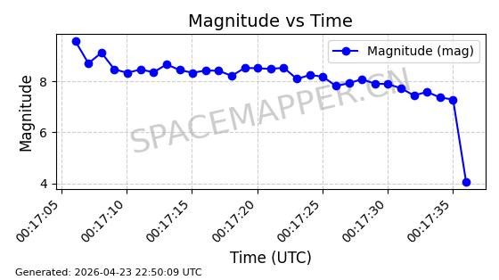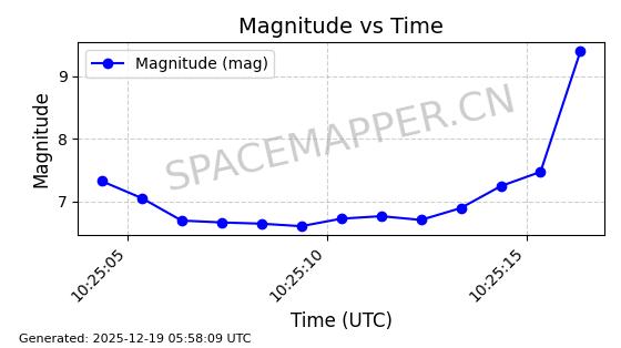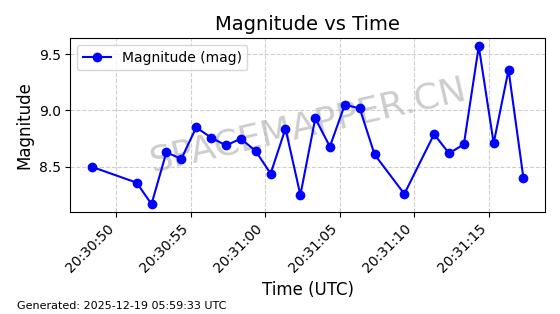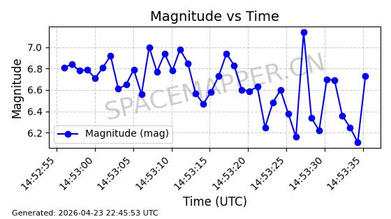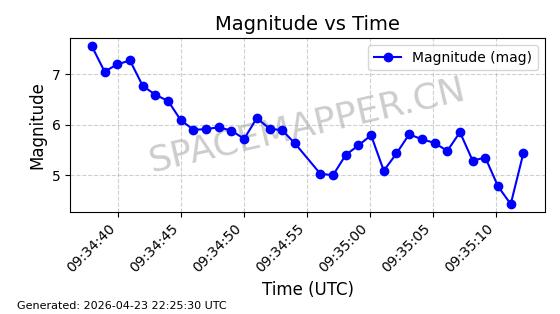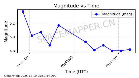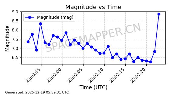 | STARLINK-30373 | 57790 | 57790 | 2023-09-04 同日期轨道 2023-134V 同批次轨道 | 已陨落 | 89分钟 | 42.9744 | 201.442 | 227.998 | 0.0020139 | 2025-09-22 19:39:47 | ||