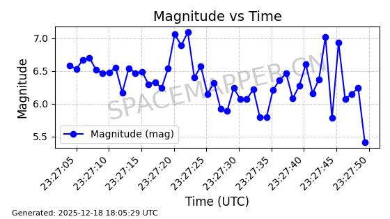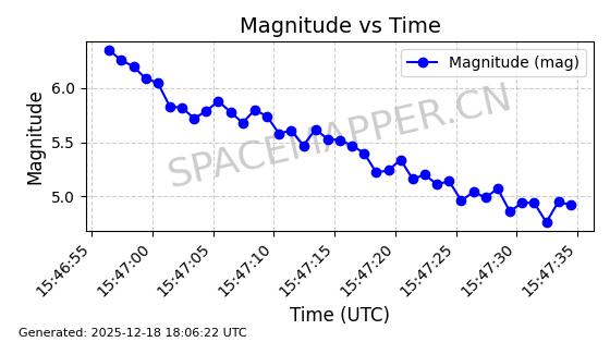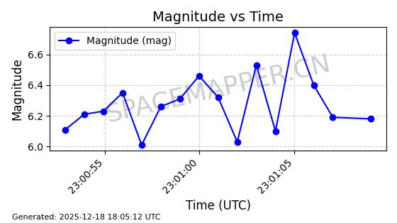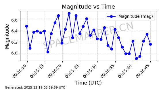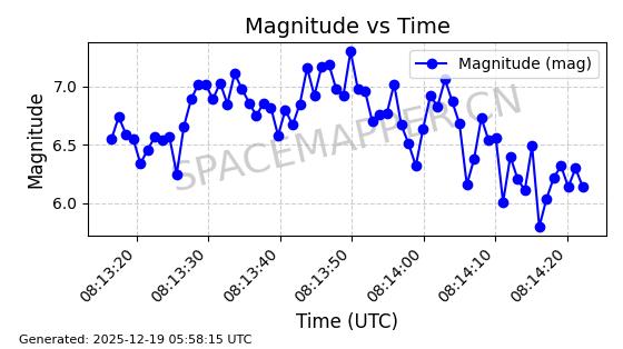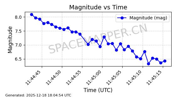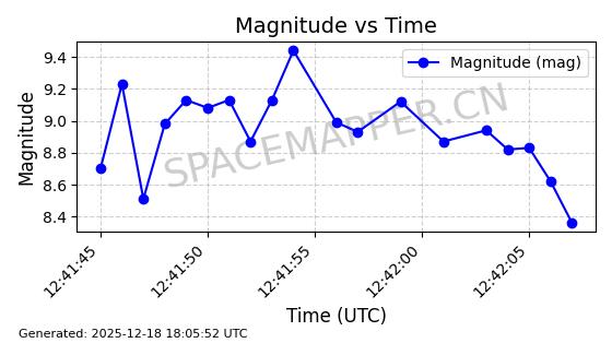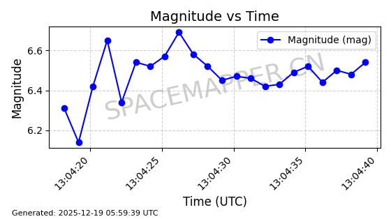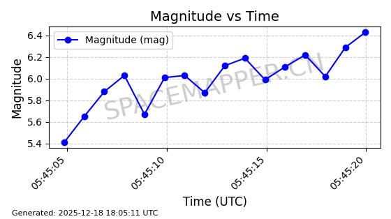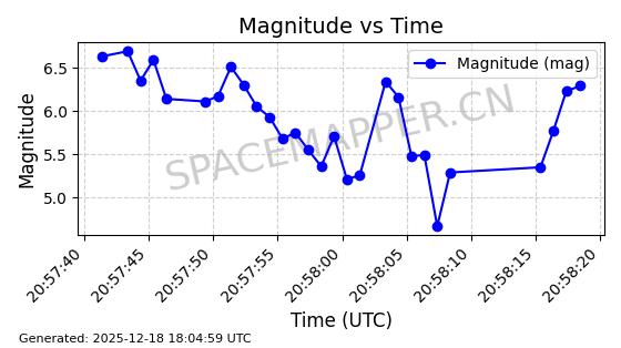 | STARLINK-30412 | 57854 | 57854 | 2023-09-12 同日期轨道 2023-141Q 同批次轨道 | 在轨 | 94分钟 | 53.1617 | 474.302 | 476.176 | 0.0001366 | 2025-12-18 06:07:05 | ||