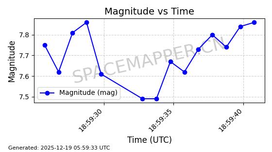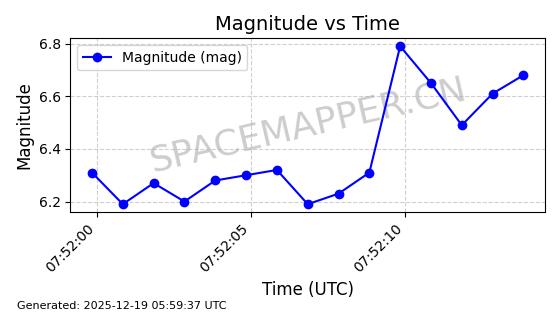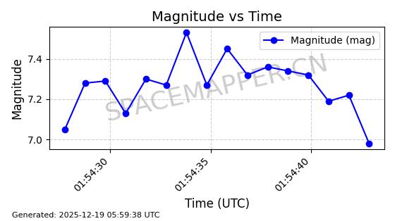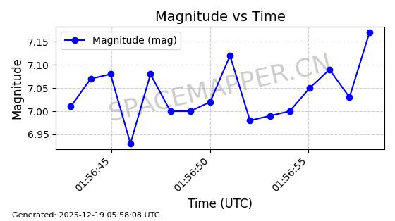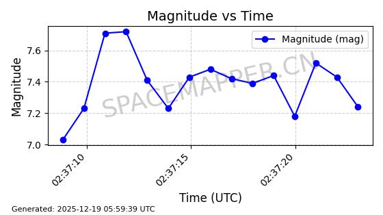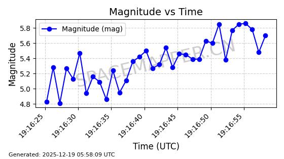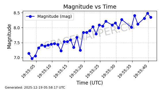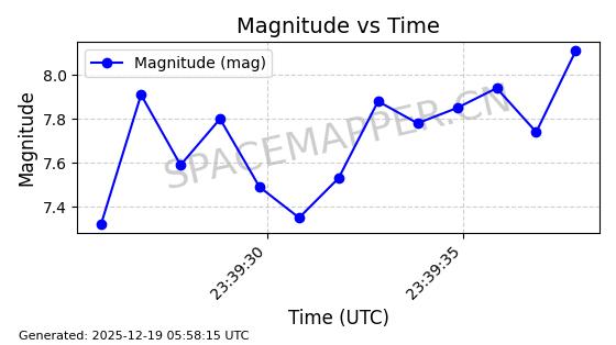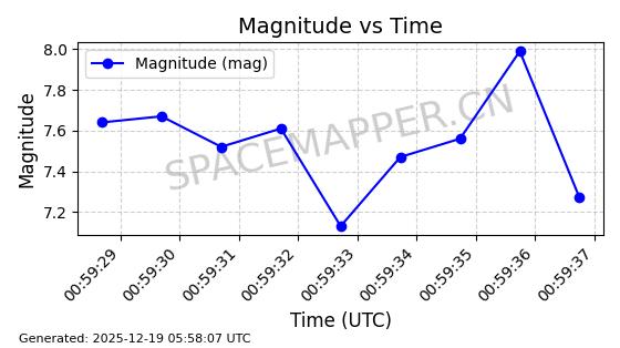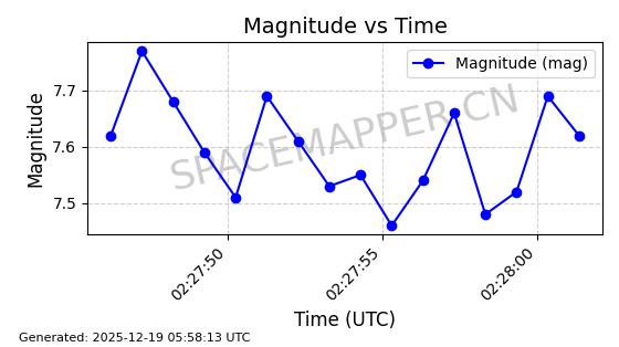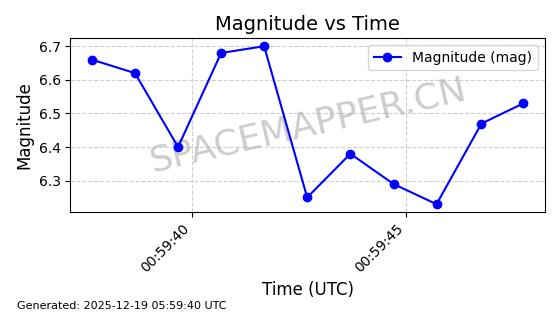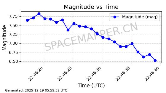 | STARLINK-30419 | 57845 | 57845 | 2023-09-12 同日期轨道 2023-141F 同批次轨道 | 已陨落 | 88分钟 | 53.1458 | 171.361 | 179.085 | 0.0005893 | 2025-02-26 14:04:01 | ||