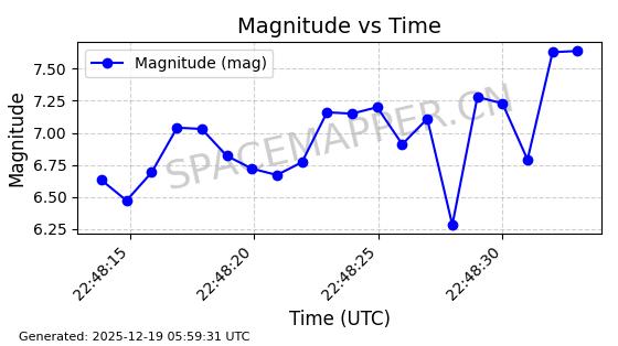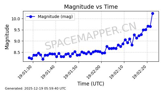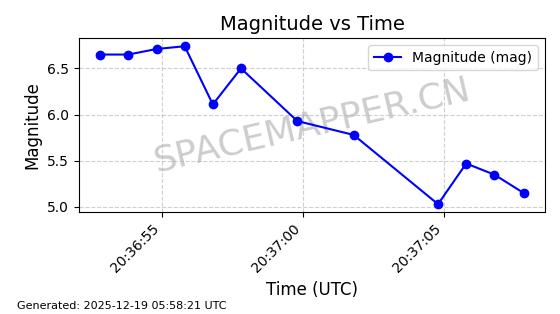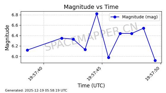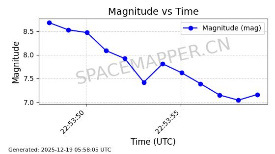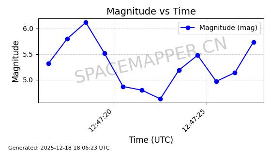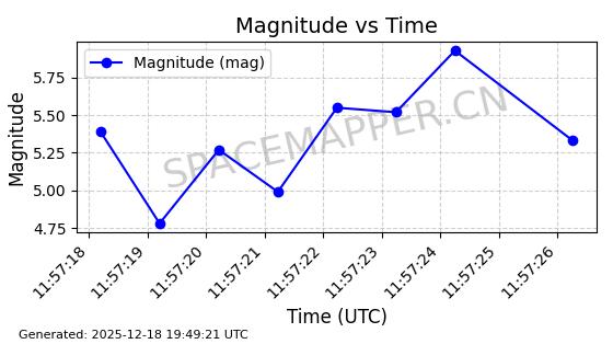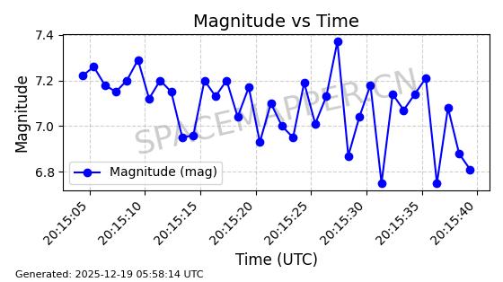 | STARLINK-30425 | 57850 | 57850 | 2023-09-12 同日期轨道 2023-141L 同批次轨道 | 在轨 | 94分钟 | 53.1619 | 474.362 | 476.106 | 0.0001271 | 2025-12-18 05:48:57 | ||