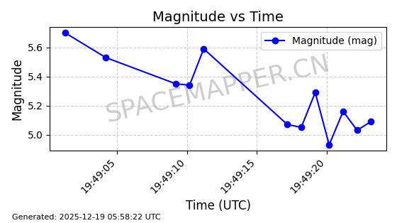 | STARLINK-30430 | 57849 | 57849 | 2023-09-12 同日期轨道 2023-141K 同批次轨道 | 在轨 | 94分钟 | 53.1611 | 474.287 | 476.053 | 0.0001288 | 2025-12-18 06:49:36 | ||