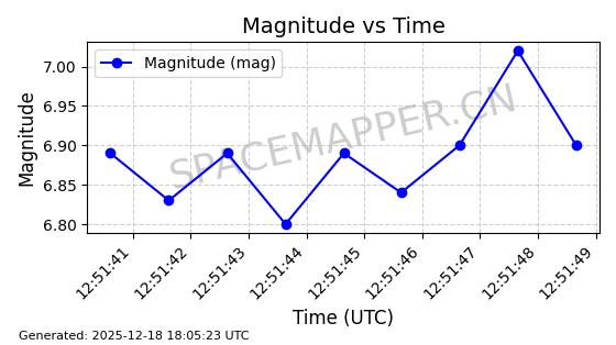 | STARLINK-30410 | 57841 | 57841 | 2023-09-12 同日期轨道 2023-141B 同批次轨道 | 在轨 | 94分钟 | 53.1626 | 474.286 | 476.168 | 0.0001372 | 2025-12-18 03:55:09 | ||