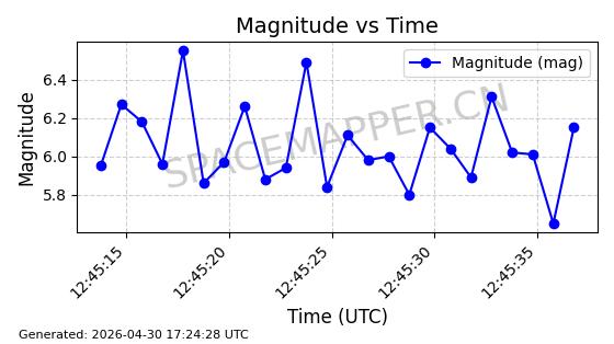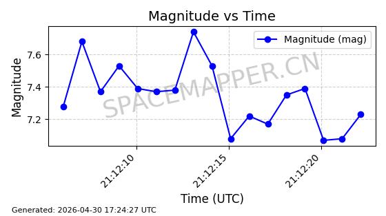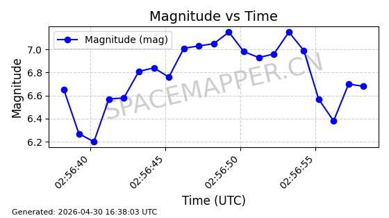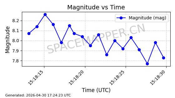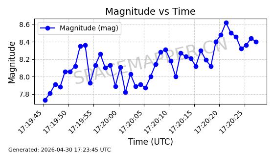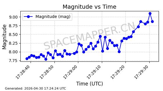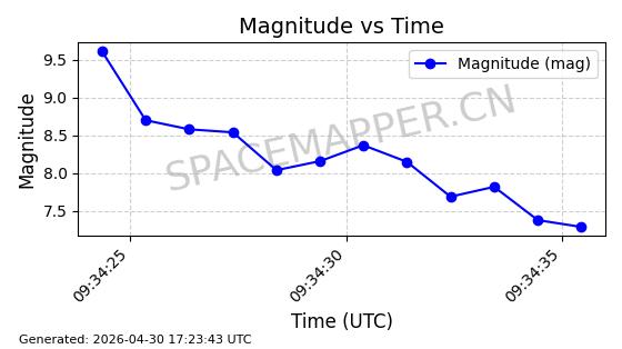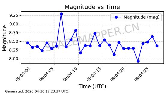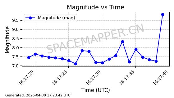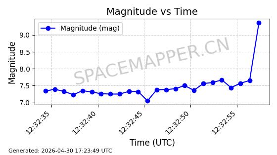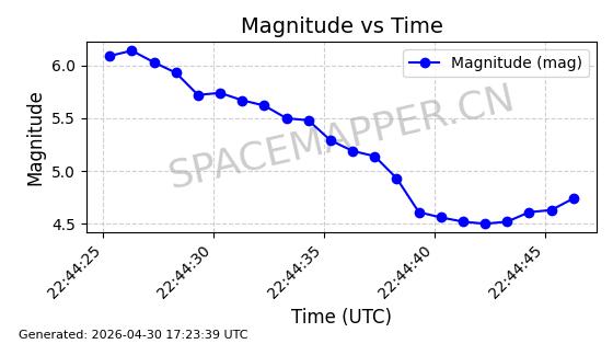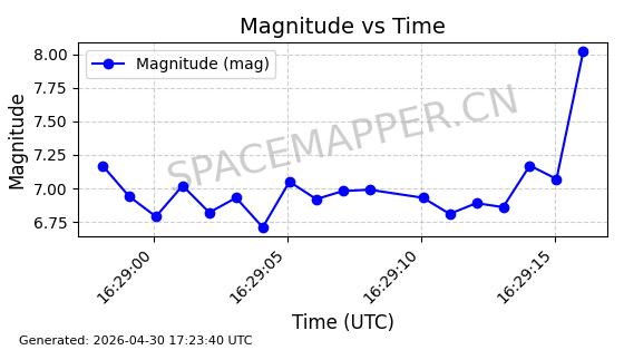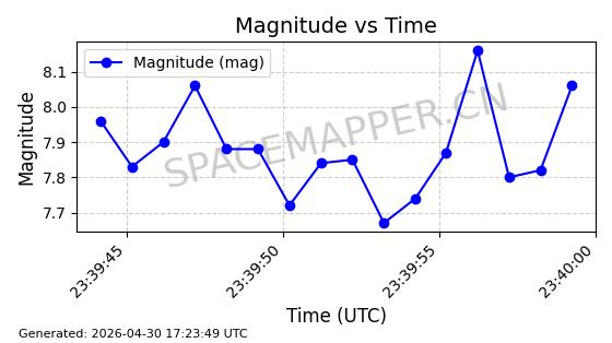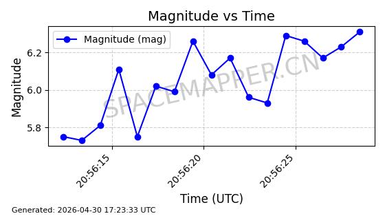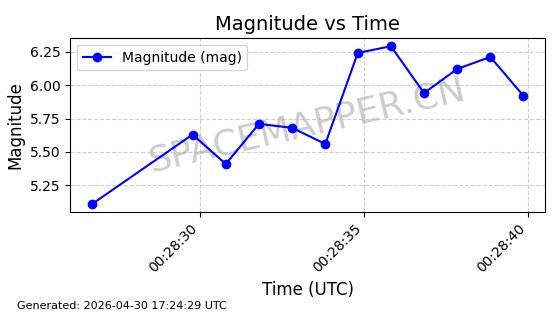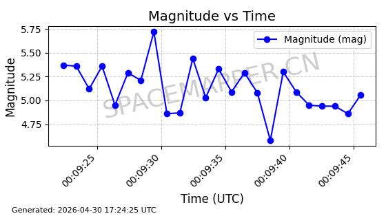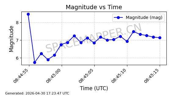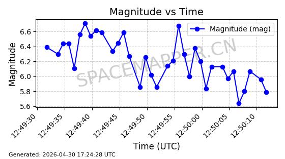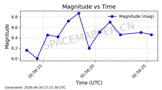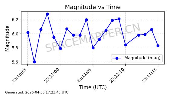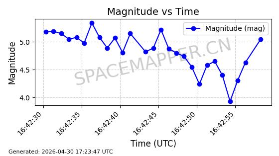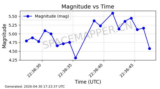 | STARLINK-30433 | 57878 | 57878 | 2023-09-16 同日期轨道 2023-144Q 同批次轨道 | 在轨 | 94分钟 | 43.0039 | 482.584 | 483.496 | 0.0000664 | 2026-04-30 00:45:48 | ||