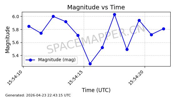 | STARLINK-30393 | 57866 | 57866 | 2023-09-16 同日期轨道 2023-144C 同批次轨道 | 在轨 | 94分钟 | 43.0060 | 481.981 | 484.099 | 0.0001543 | 2026-04-30 00:56:54 | ||