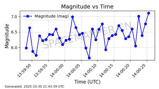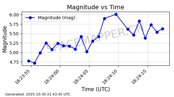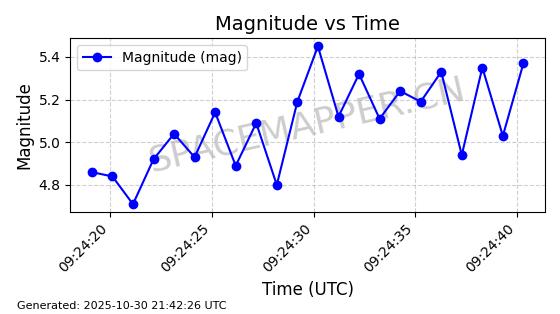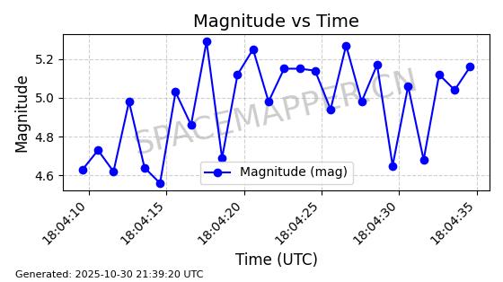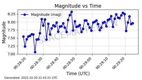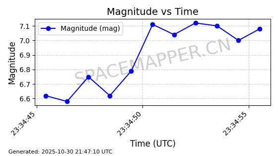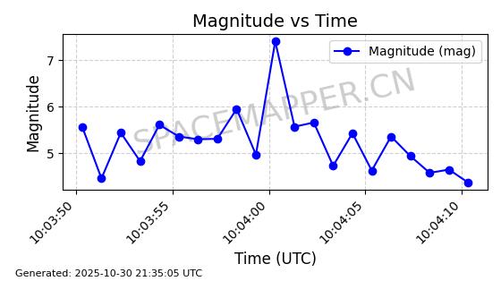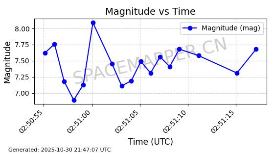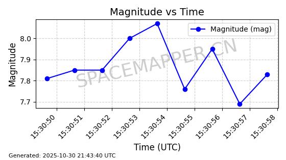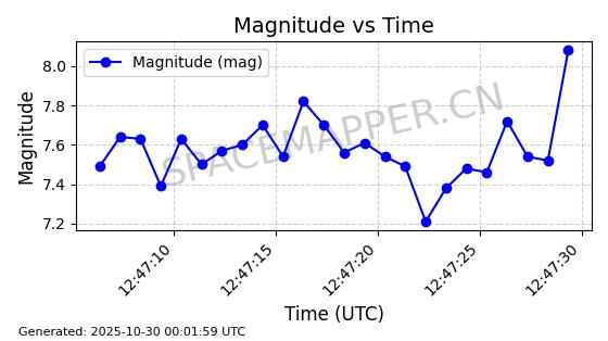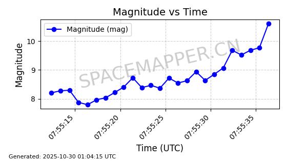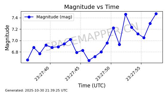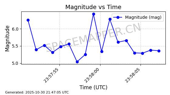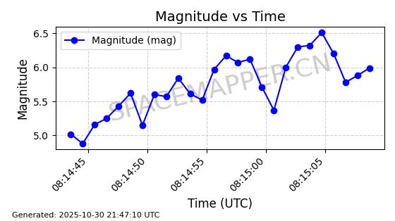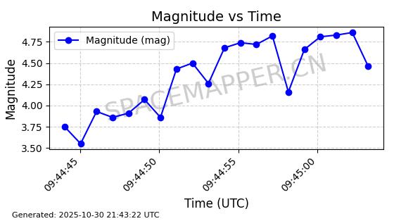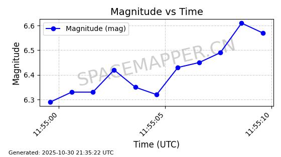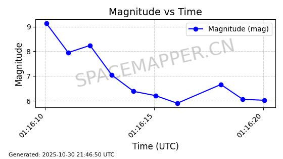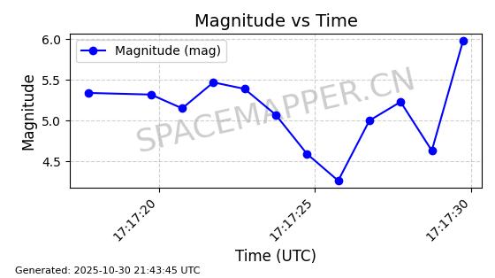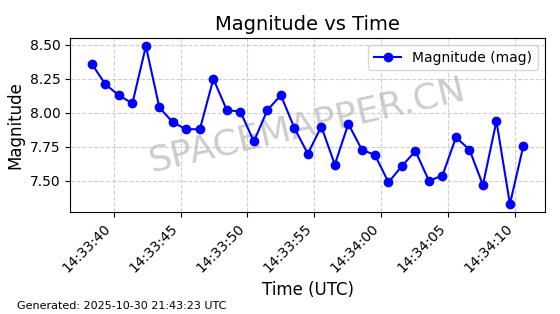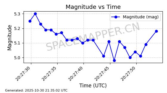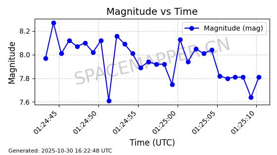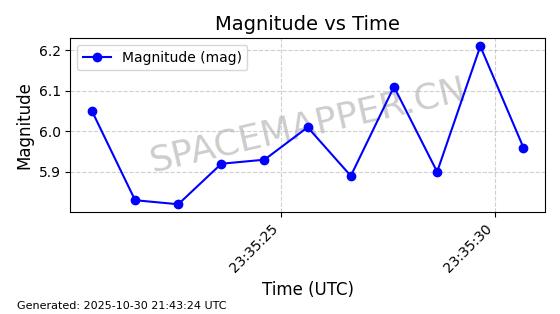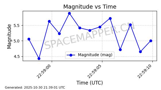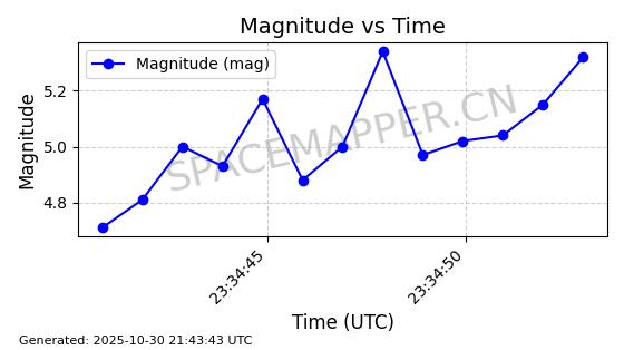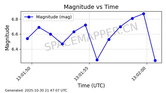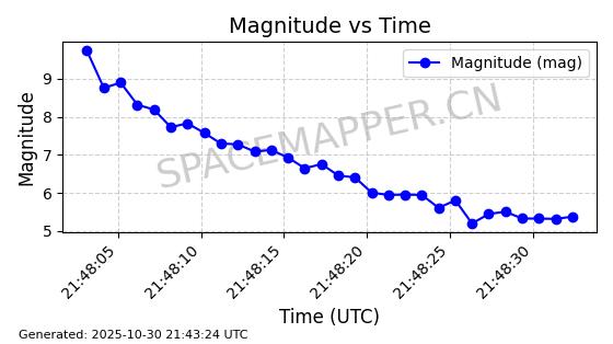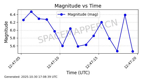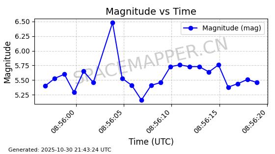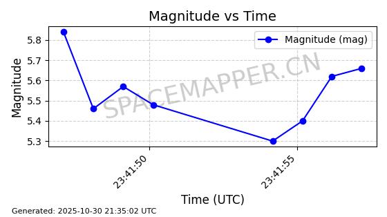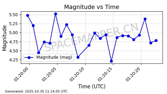 | STARLINK-30493 | 58116 | 58116 | 2023-10-21 同日期轨道 2023-161V 同批次轨道 | 在轨 | 94分钟 | 53.1598 | 474.268 | 476.168 | 0.0001386 | 2025-10-30 06:50:50 |