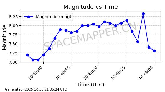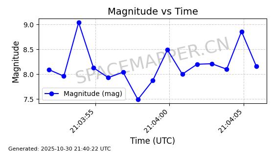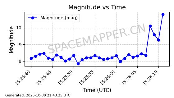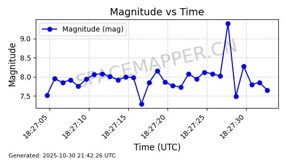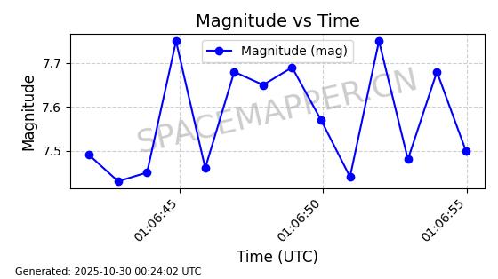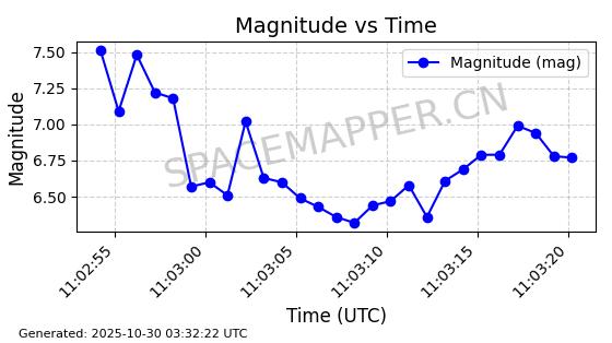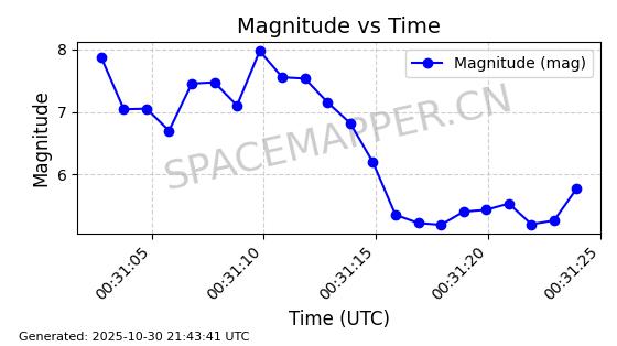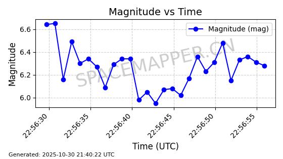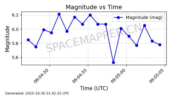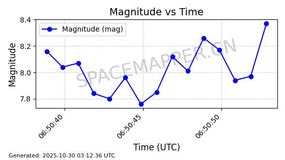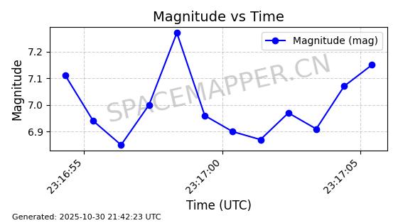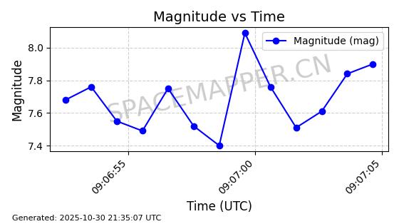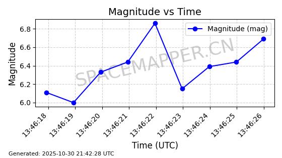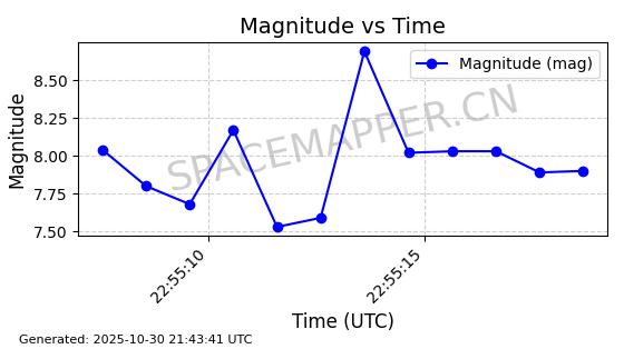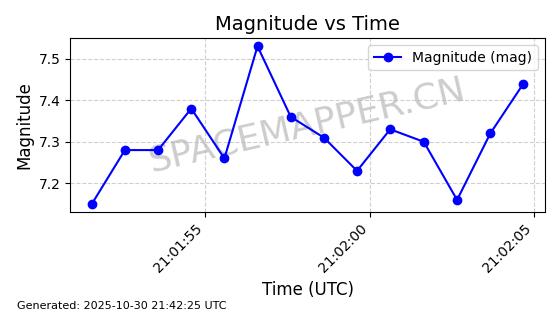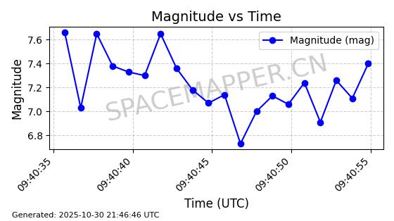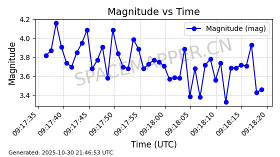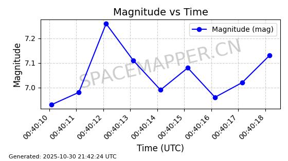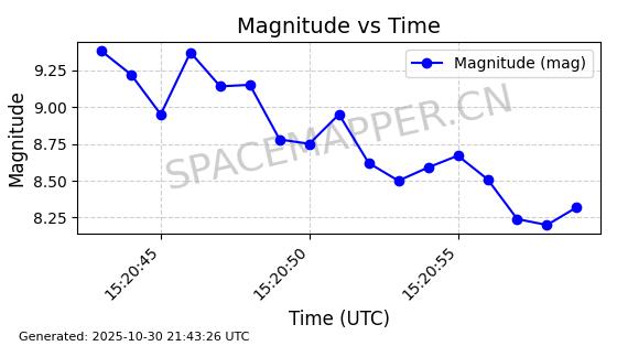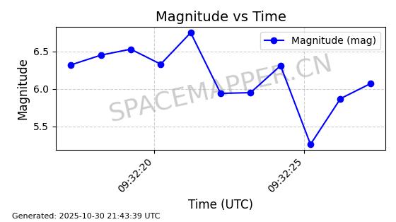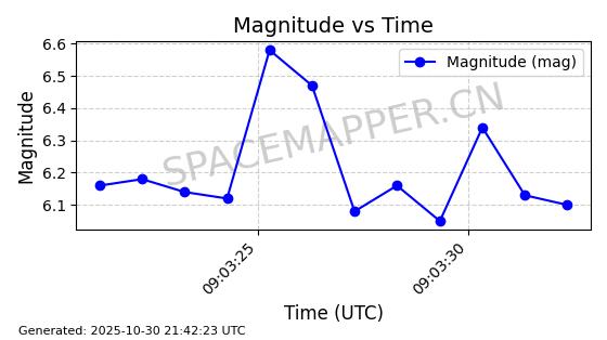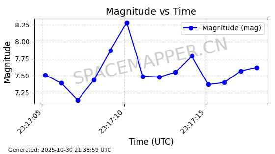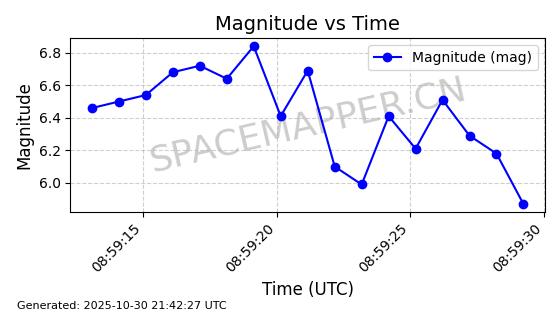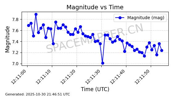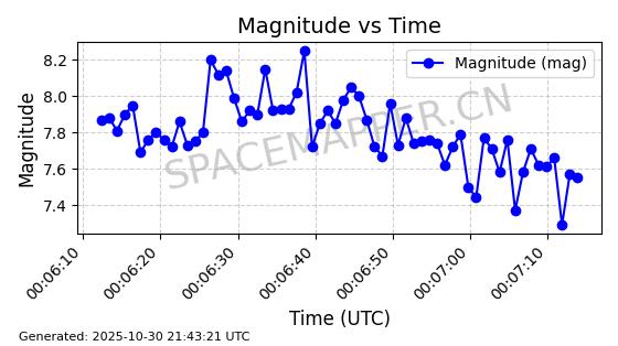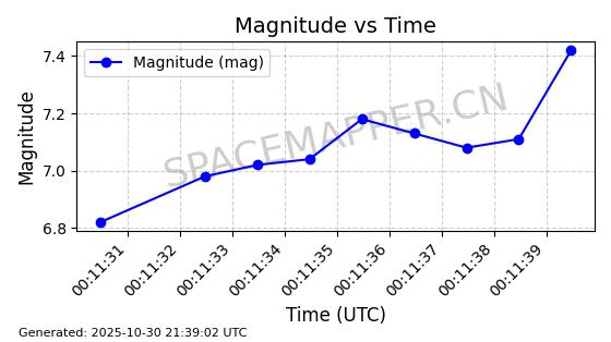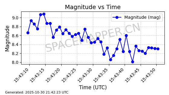 | STARLINK-30494 | 57970 | 57970 | 2023-09-30 同日期轨道 2023-151G 同批次轨道 | 在轨 | 91分钟 | 42.9836 | 326.997 | 328.383 | 0.0001032 | 2025-10-30 06:18:50 | ||