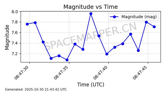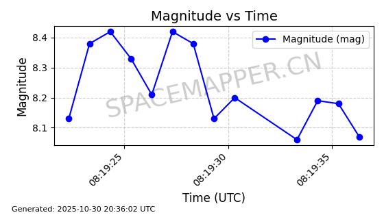 | STARLINK-30513 | 58071 | 58071 | 2023-10-13 同日期轨道 2023-158W 同批次轨道 | 在轨 | 94分钟 | 43.0006 | 472.477 | 478.699 | 0.0004538 | 2025-10-30 05:54:14 | ||