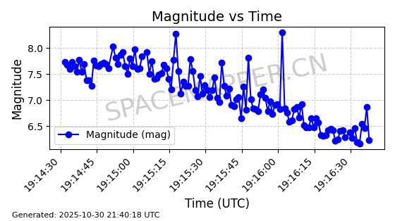 | STARLINK-30514 | 58028 | 58028 | 2023-10-09 同日期轨道 2023-156A 同批次轨道 | 在轨 | 94分钟 | 53.1606 | 474.323 | 476.129 | 0.0001317 | 2025-10-30 06:53:34 | ||