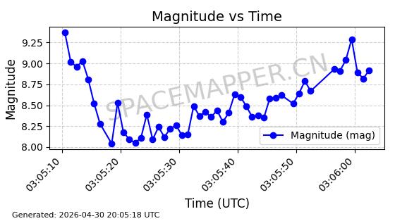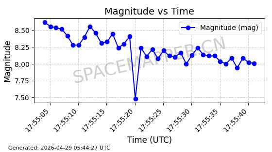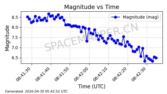 在轨 94分钟 43.0030 482.141 483.941 0.0001311 2026-04-29