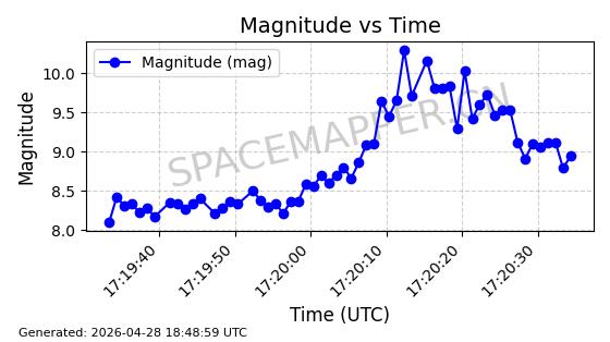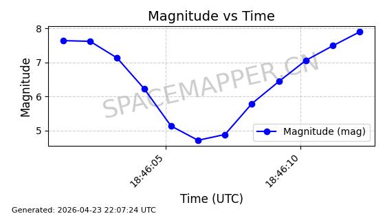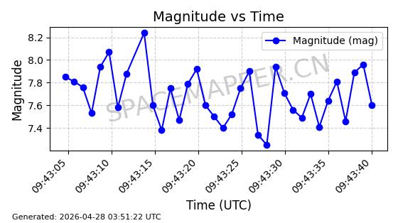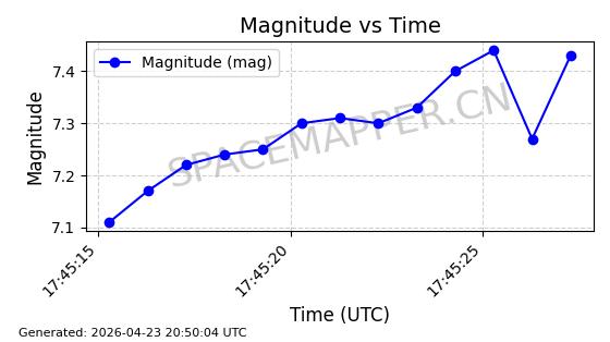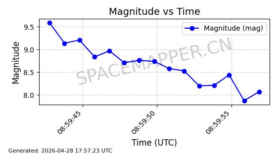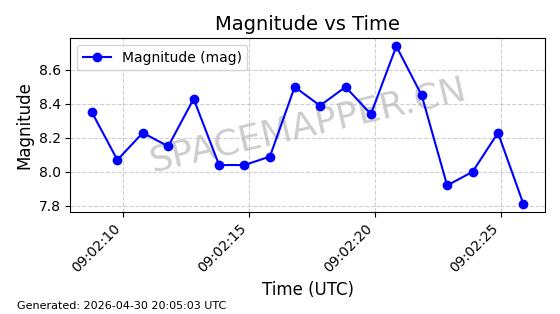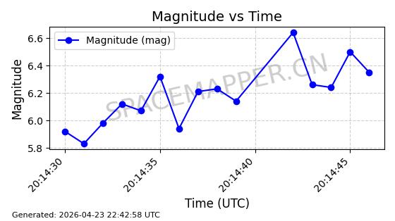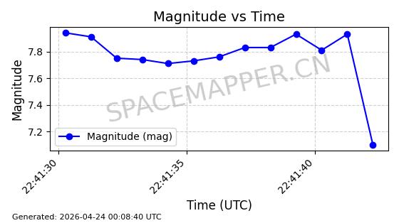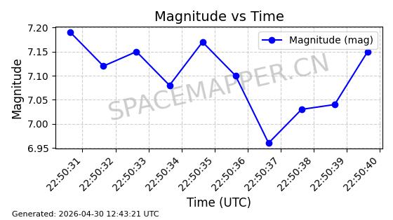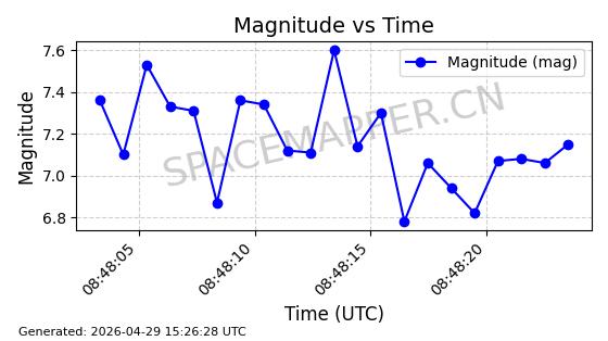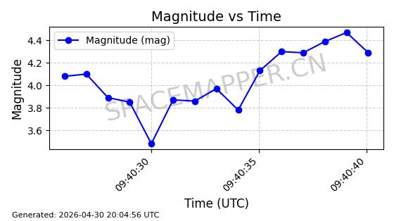 在轨 94分钟 43.0040 482.148 483.946 0.0001309 2026-04-29
