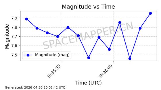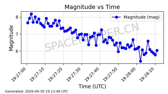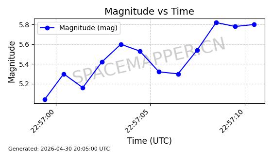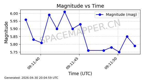 在轨 96分钟 69.9990 572.039 577.079 0.0003624 2026-04-30