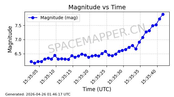 在轨 94分钟 43.0062 481.995 484.047 0.0001494 2026-04-29