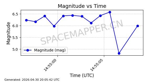 在轨 94分钟 53.1620 474.383 476.123 0.0001268 2026-04-30