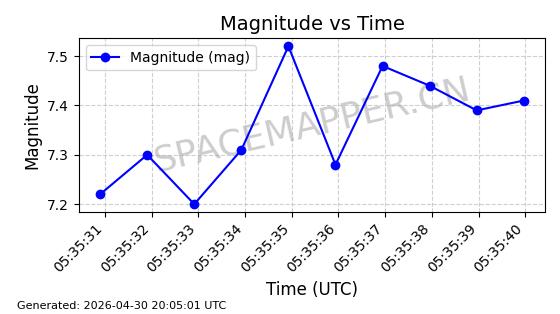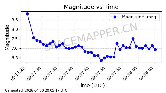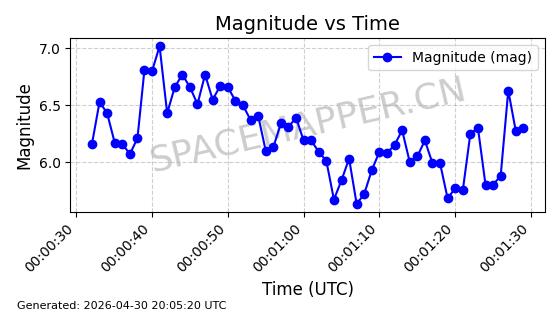 在轨 96分钟 69.9993 572.057 577.017 0.0003566 2026-04-30