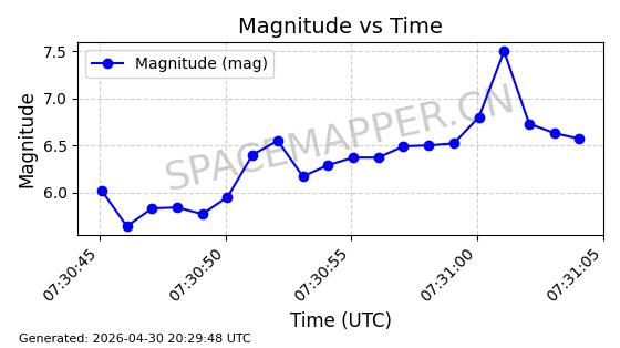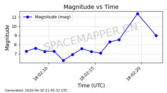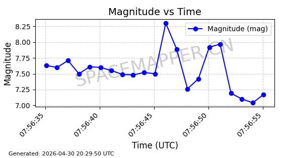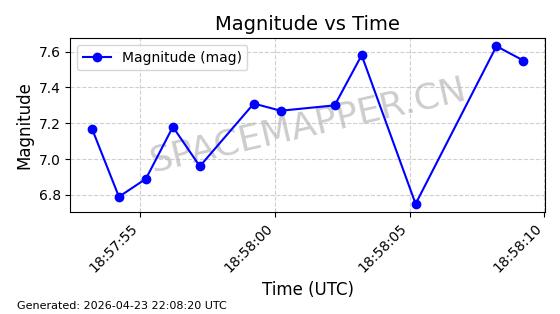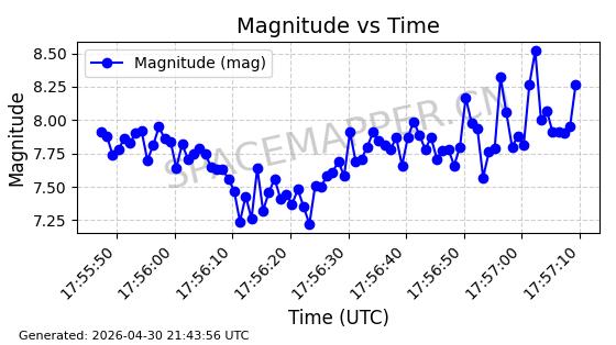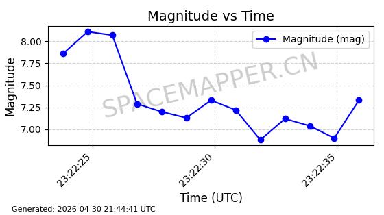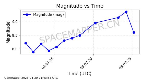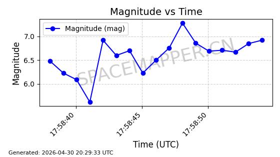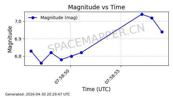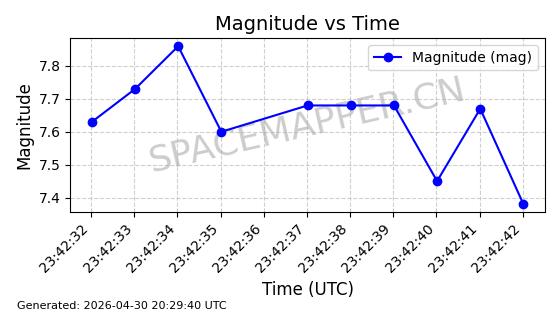 | STARLINK-30982 | 58512 | 58512 | 2023-12-07 同日期轨道 2023-191E 同批次轨道 | 在轨 | 94分钟 | 43.0019 | 482.57 | 483.566 | 0.0000725 | 2026-04-30 04:36:11 | ||