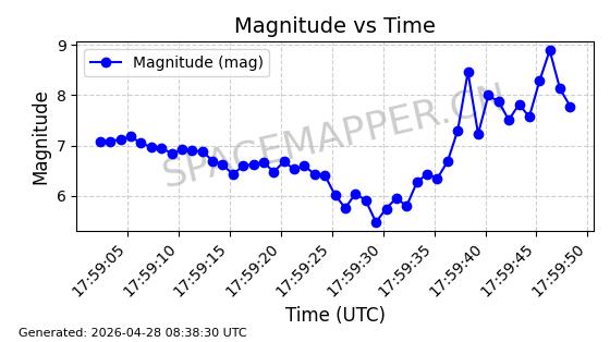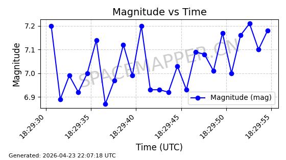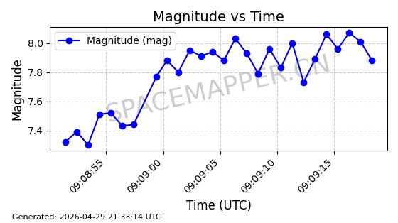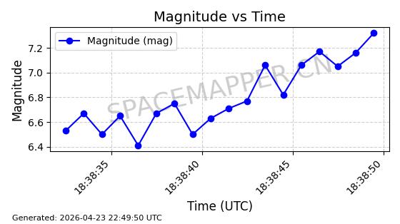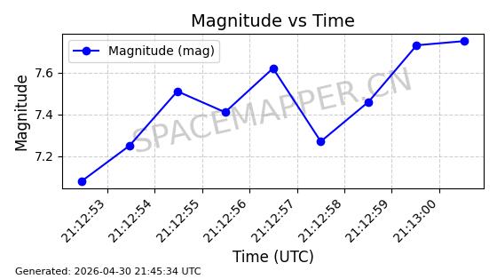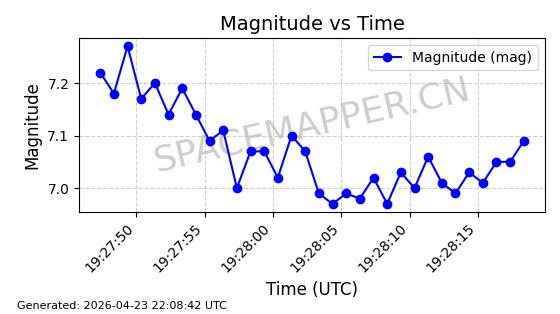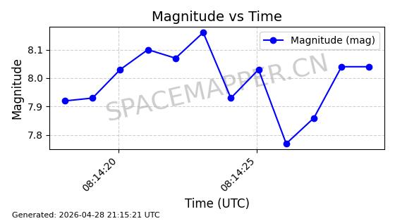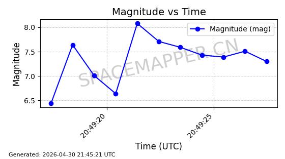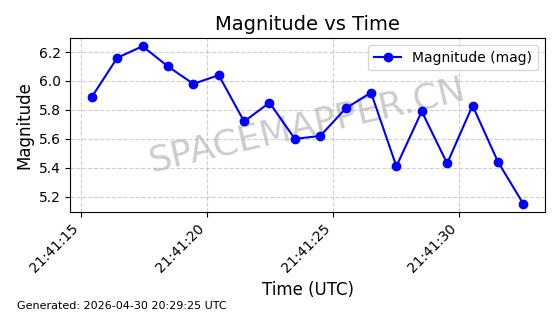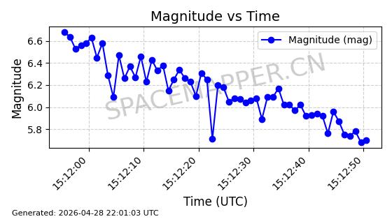 | STARLINK-3101 | 49168 | 49168 | 2021-09-14 同日期轨道 2021-082AQ 同批次轨道 | 已陨落 | 87分钟 | 69.9858 | 141.315 | 157.771 | 0.0012604 | 2025-04-13 20:03:38 | ||