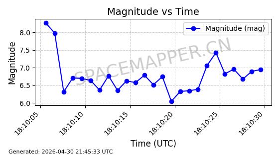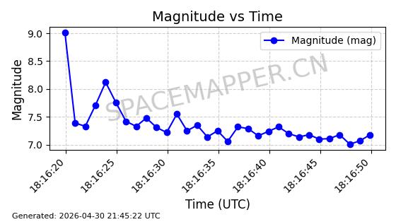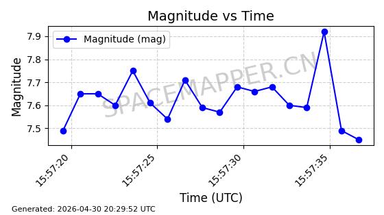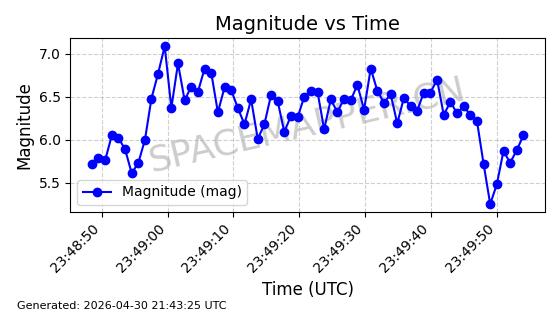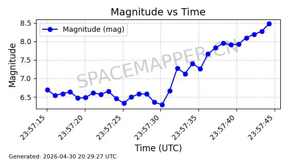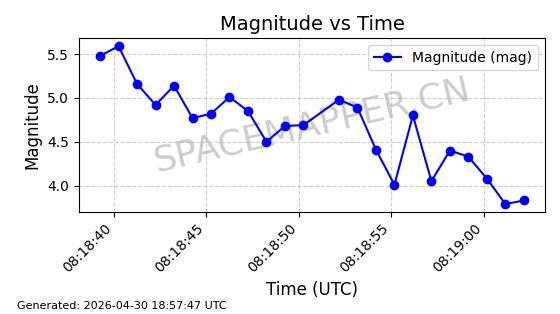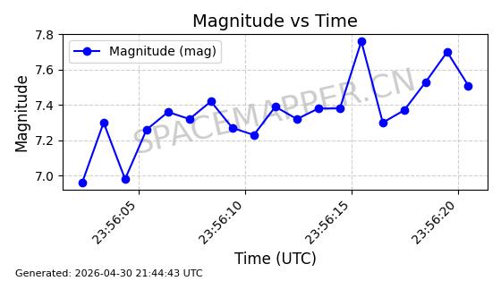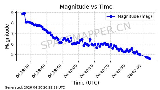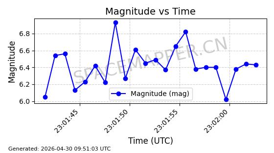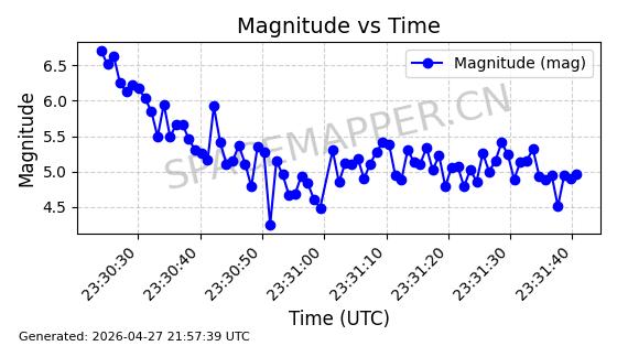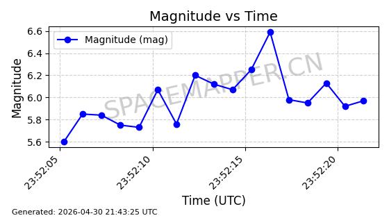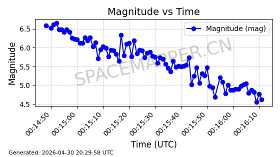 | STARLINK-30987 | 58487 | 58487 | 2023-12-03 同日期轨道 2023-186Q 同批次轨道 | 在轨 | 94分钟 | 43.0027 | 482.618 | 483.504 | 0.0000645 | 2026-04-30 01:53:30 | ||