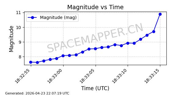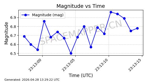 | STARLINK-30961 | 58445 | 58445 | 2023-11-28 同日期轨道 2023-183J 同批次轨道 | 在轨 | 94分钟 | 43.0009 | 482.343 | 483.795 | 0.0001057 | 2026-04-29 08:17:34 | ||