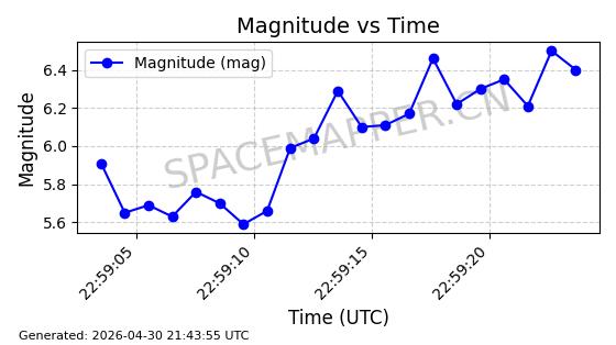 | STARLINK-31026 | 58508 | 58508 | 2023-12-07 同日期轨道 2023-191A 同批次轨道 | 在轨 | 94分钟 | 43.0005 | 482.175 | 483.929 | 0.0001277 | 2026-04-30 04:16:15 | ||