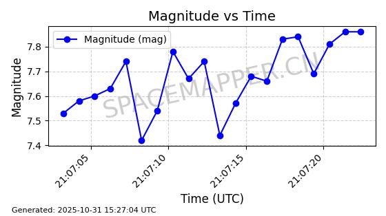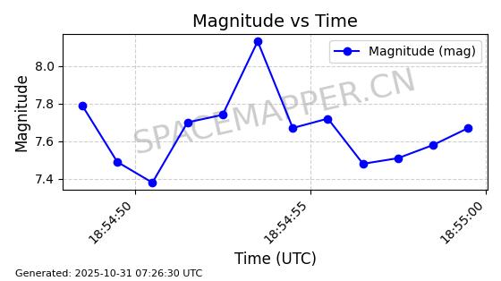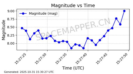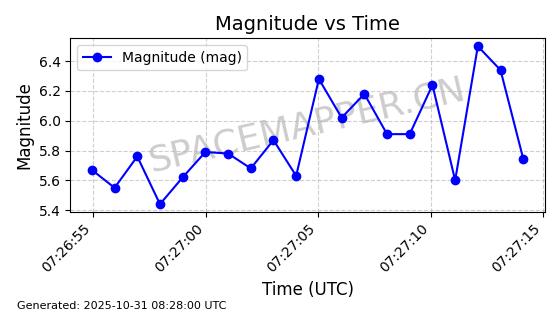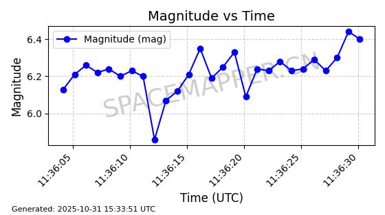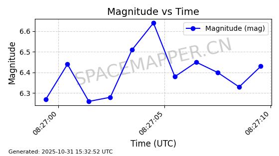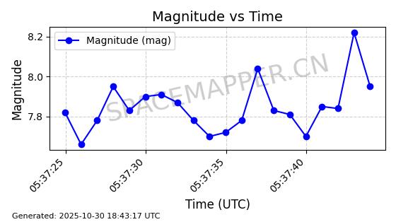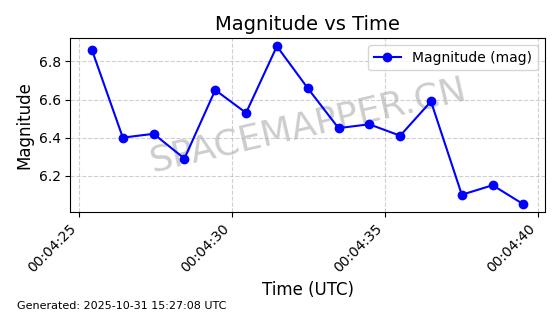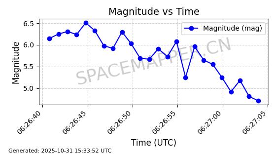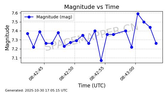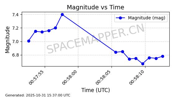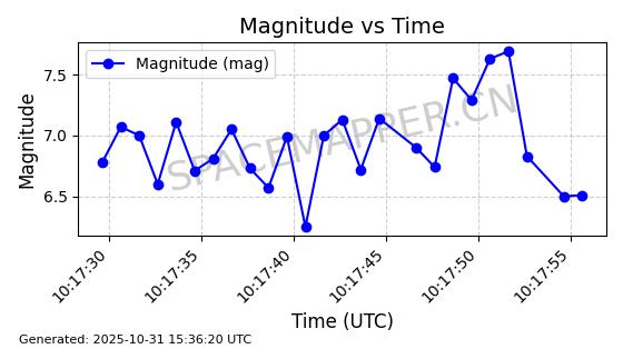 | 卫星名称 | AOE ID | NORAD ID | 发射日期 国际编号 | 在轨状态 | 轨道周期 | 轨道倾角 (度) | 近地点 (Km) | 远地点 (Km) | 偏心率 | 更新时间 (UTC) | 近期光变曲线 | 服务 |